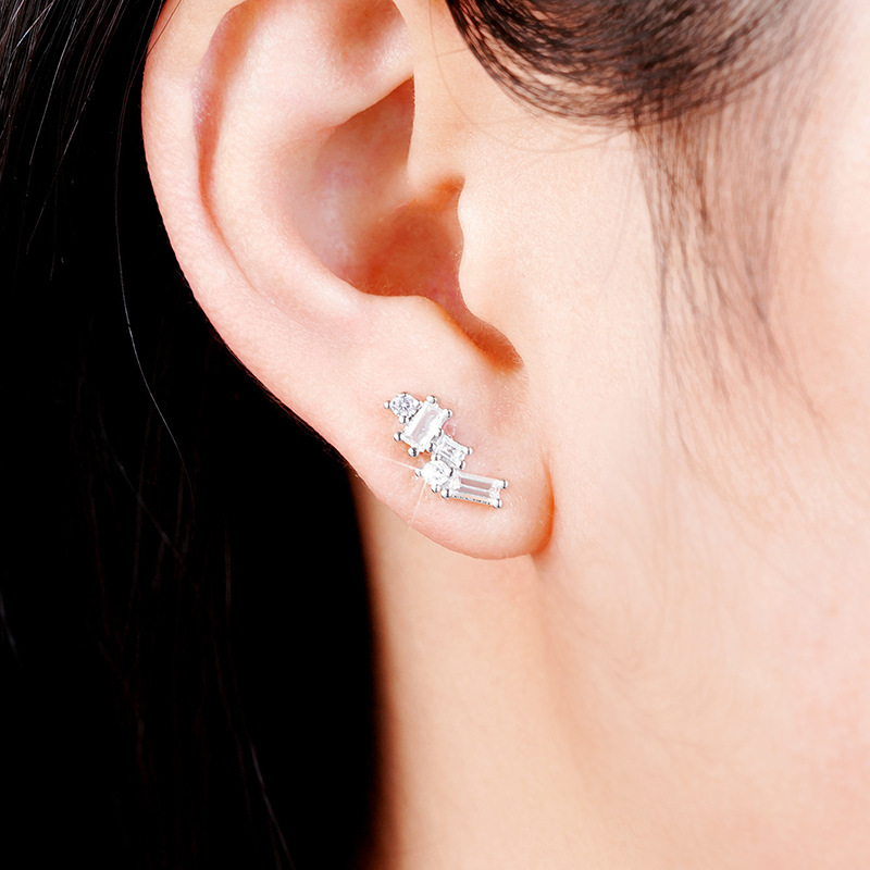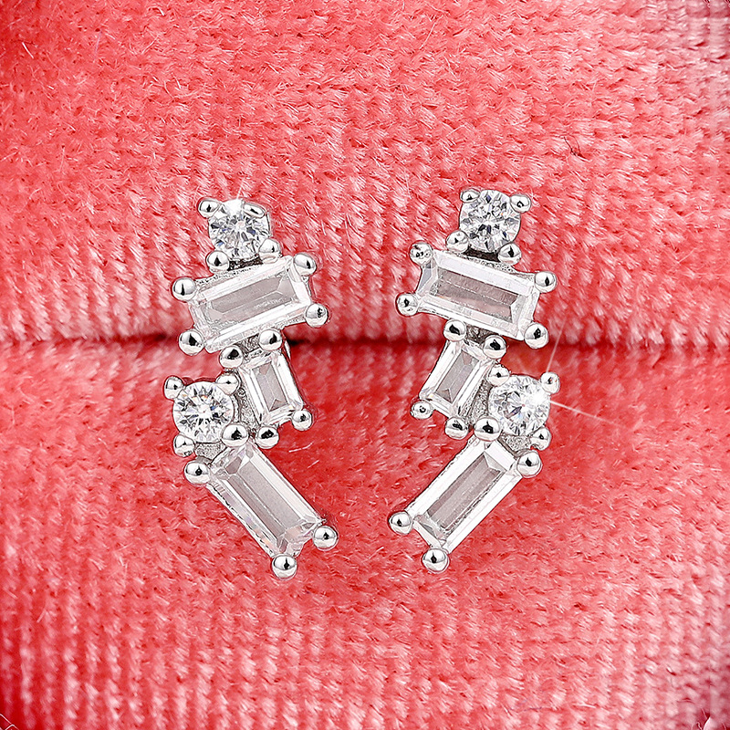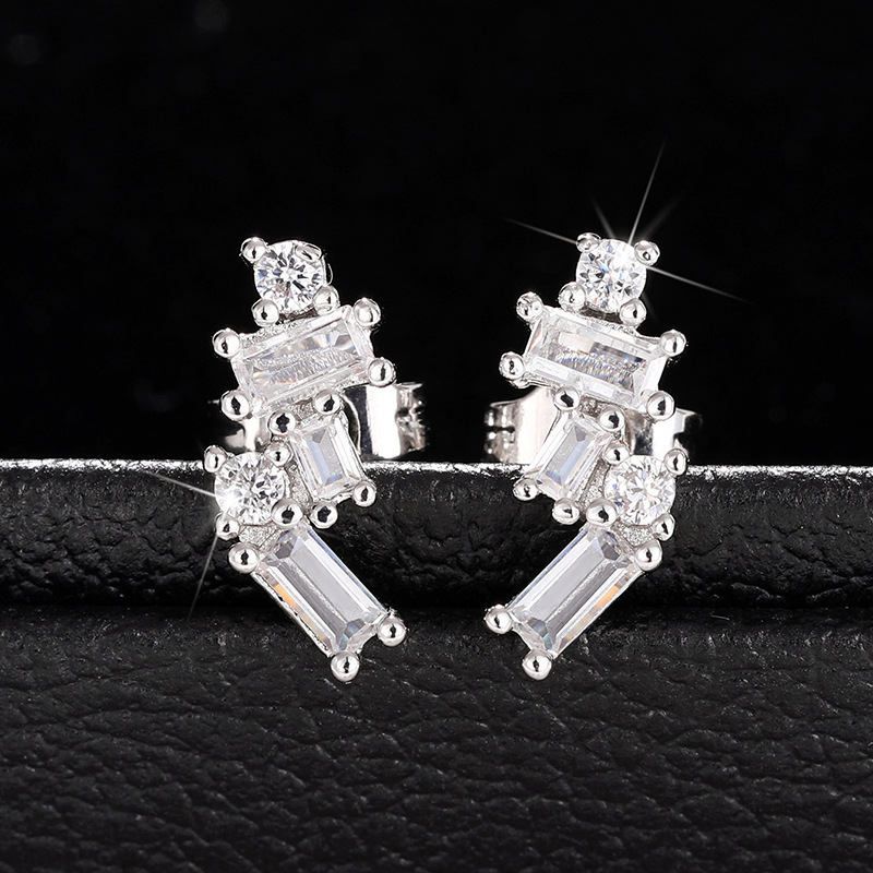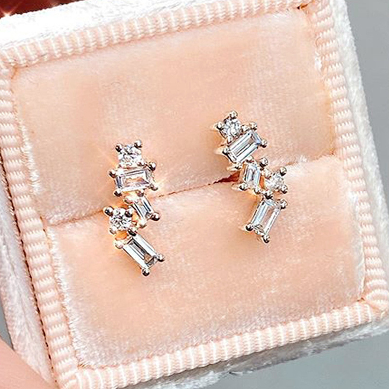 Geometric four-claw inlaid zircon earrings for women fashionable personality trend earrings popular quadrilateral earrings