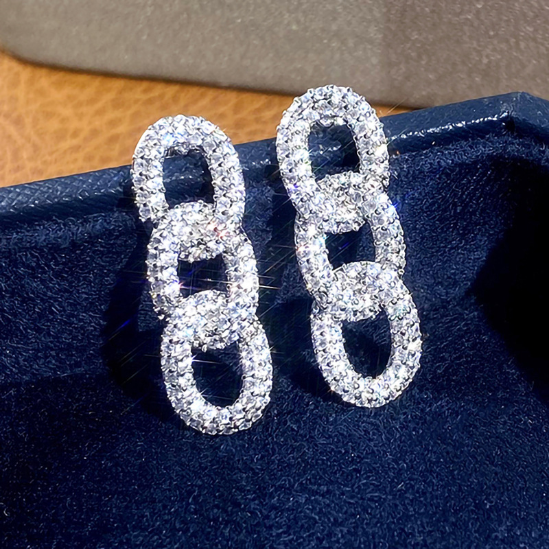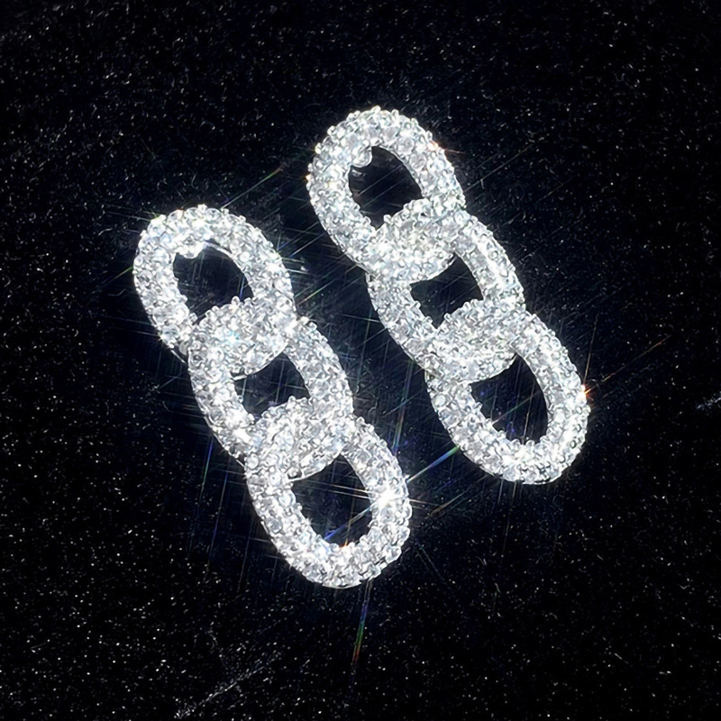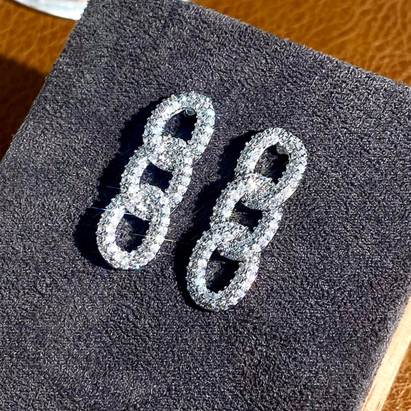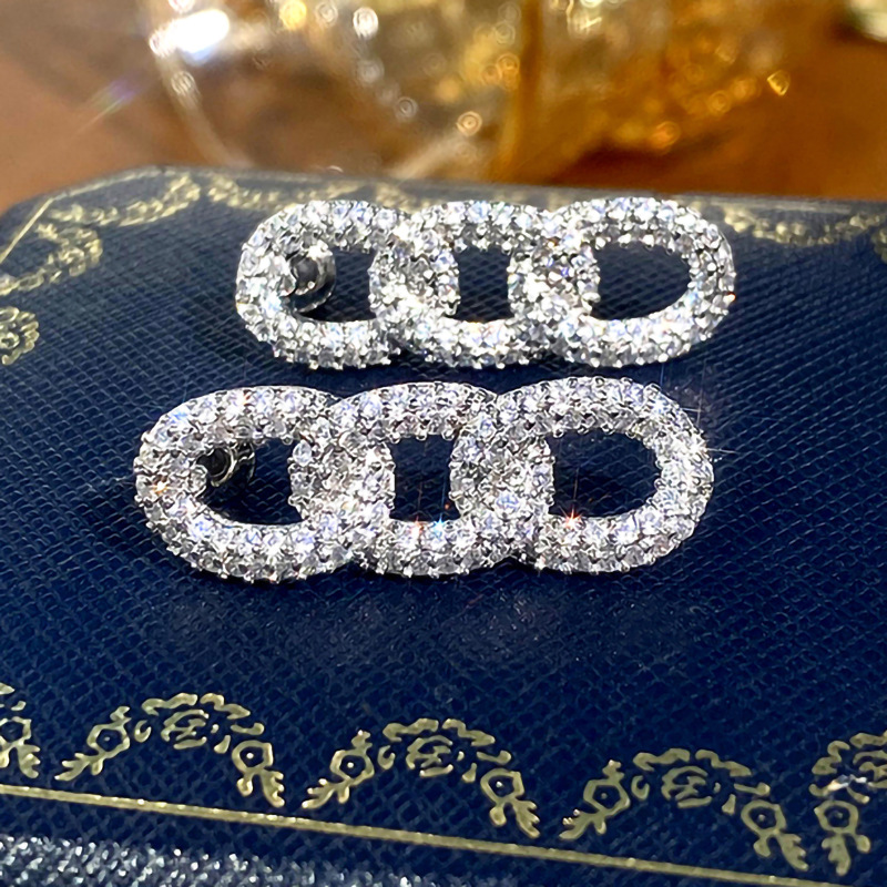 Geometric hoop earrings for women with multi-hole cross-studded diamonds, high-end earrings, fashionable and trendy, popular party earrings