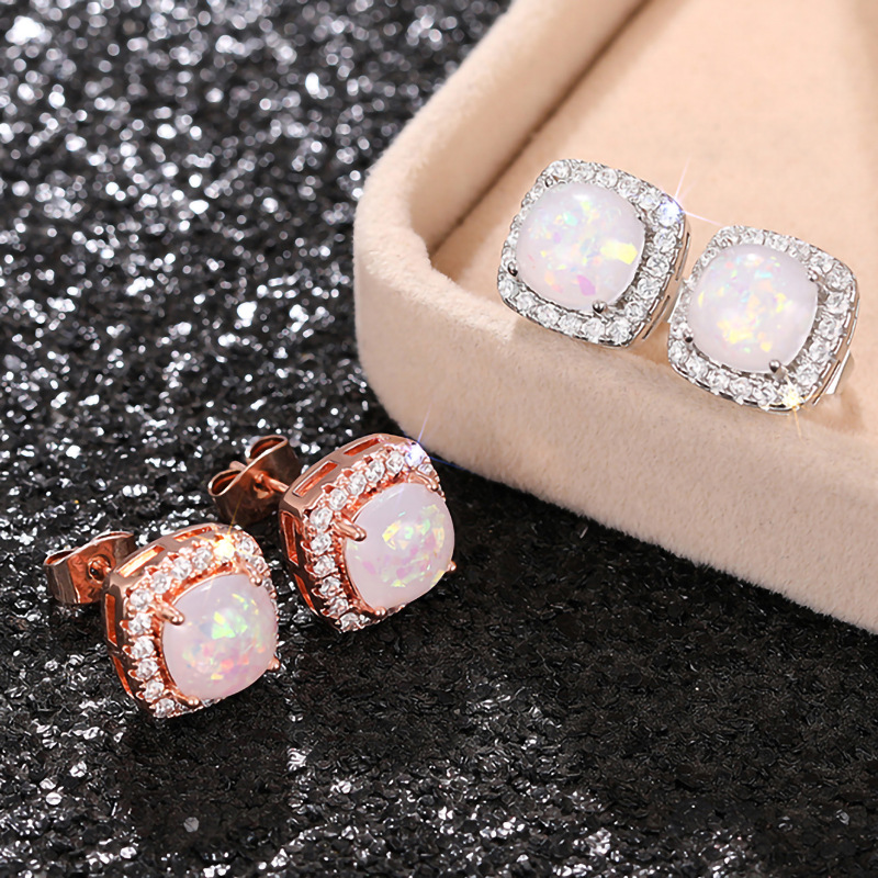 Geometric micro-inlaid earrings for women, fashionable and trendy, light luxury earrings, small fragrance style, party wear
