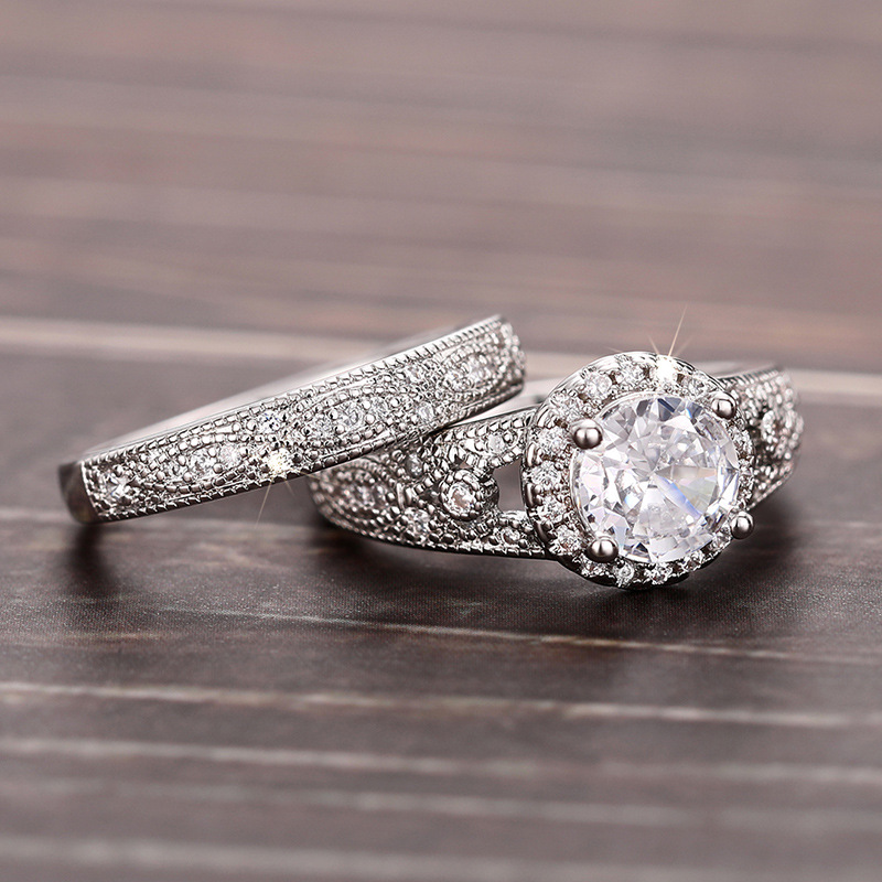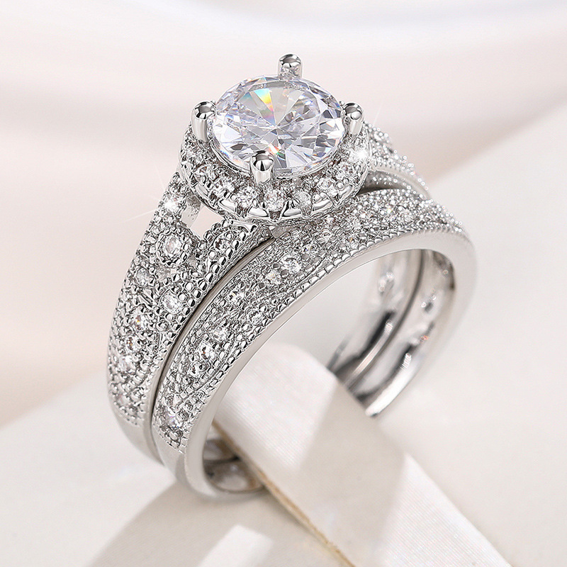 Micro-inlaid celebrity style classic all-match popular ring six-claw zircon wedding ring European and American style light luxury ring
