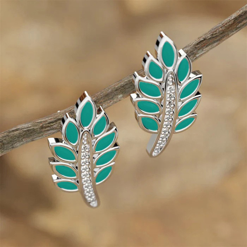 Glossy and exquisite new leaf earrings for women, pastoral style oil painting design, leaf jewelry, forest style, daily style