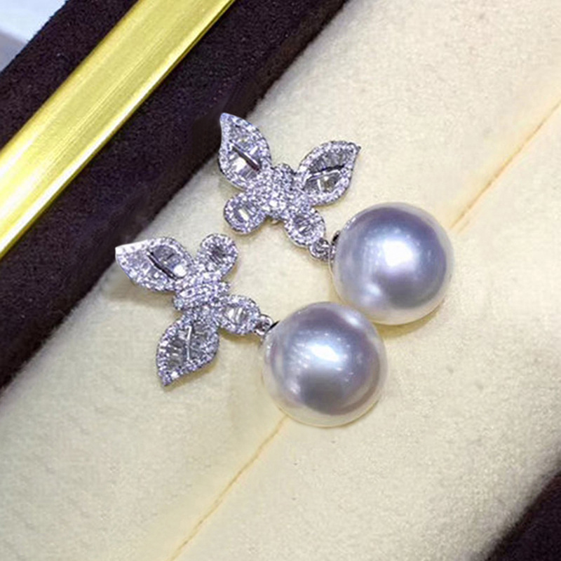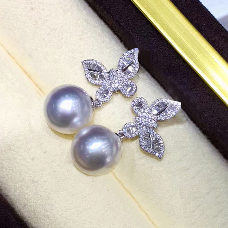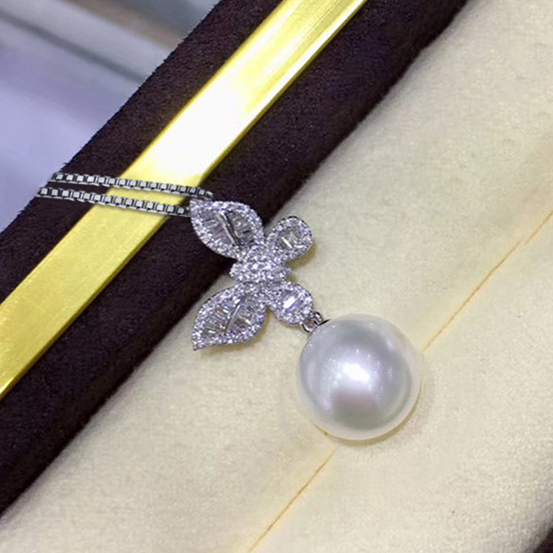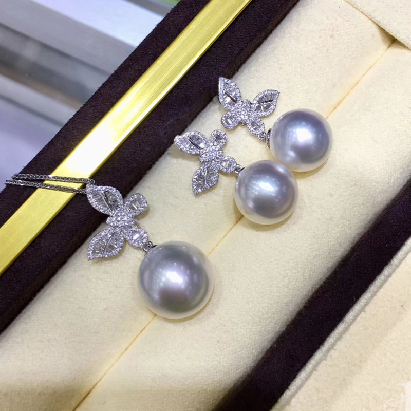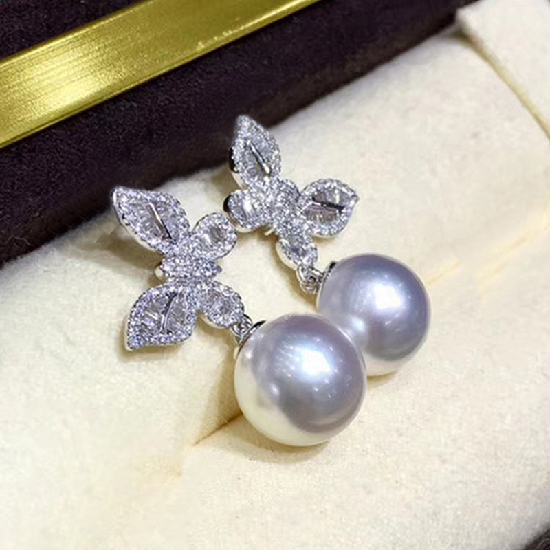 Glossy butterfly imitation pearl jewelry set exquisite zircon earrings for women sweet style box chain pendant