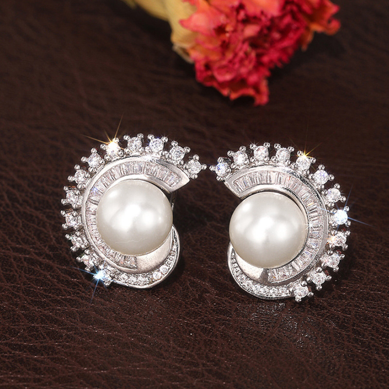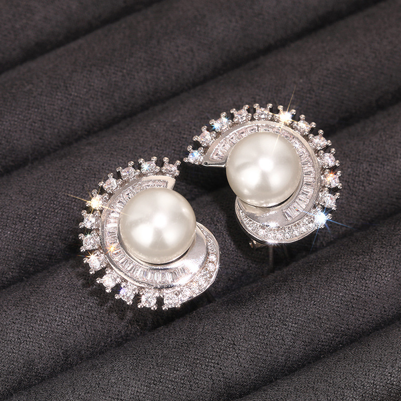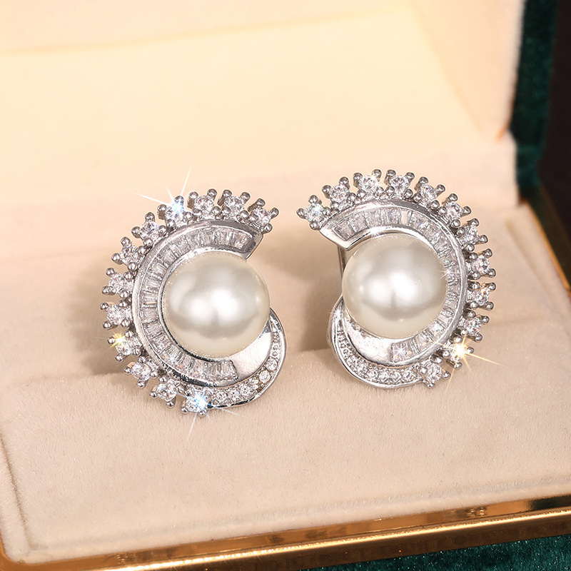 Glossy geometric imitation pearl earrings for women, light luxury Chanel style earrings, fashionable evening dress matching jewelry