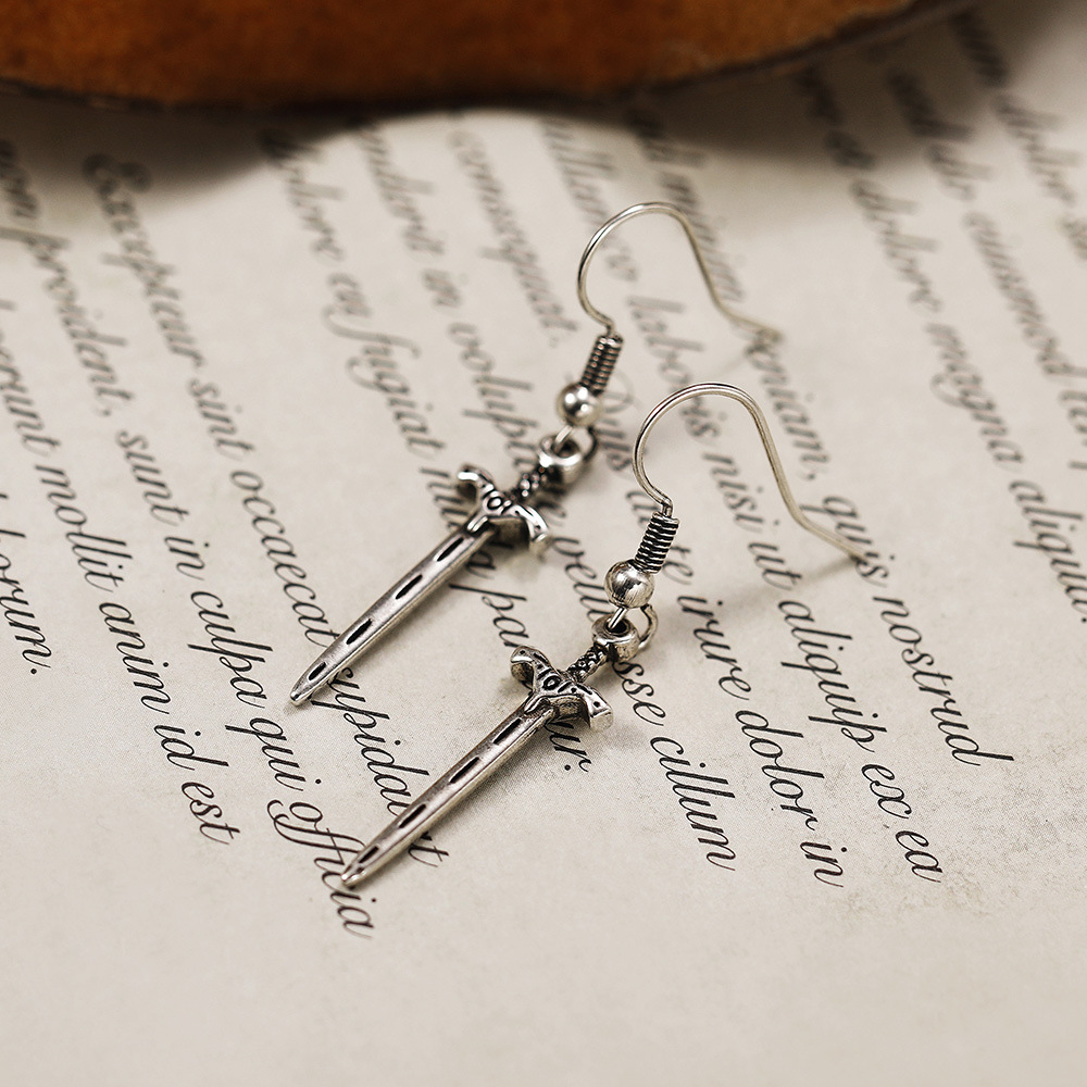 Gothic sword and dagger earrings punk dark long sword earrings female European and American retro jewelry wholesale