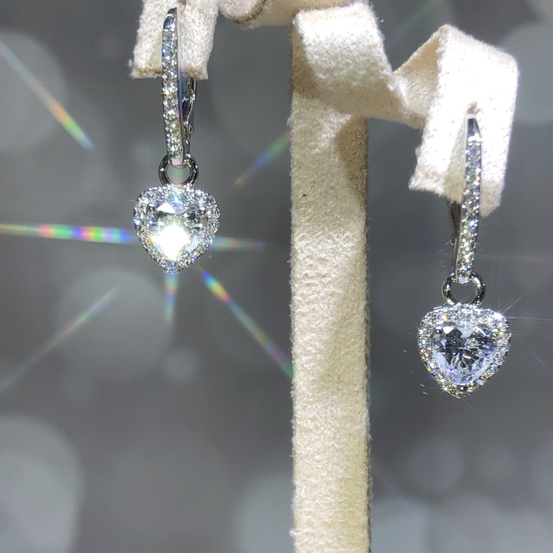 Heart-shaped earrings are hot selling. Simple love zircon earrings with temperament and slim face.