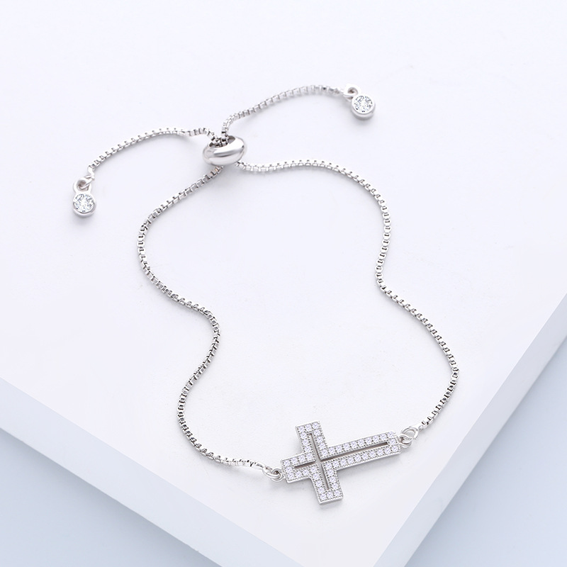 High-end European and American jewelry, simple design, cross zircon micro-inlaid bracelet, elegant and versatile women's jewelry bra17