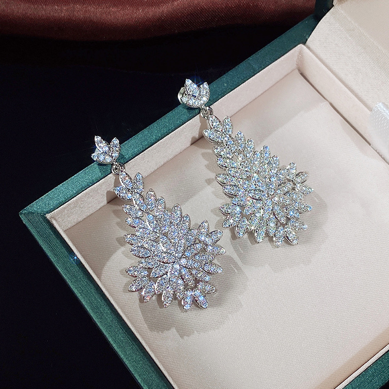 High-end heavy-duty wedding accessories European and American bride fashion evening niche earrings luxury full diamond earrings