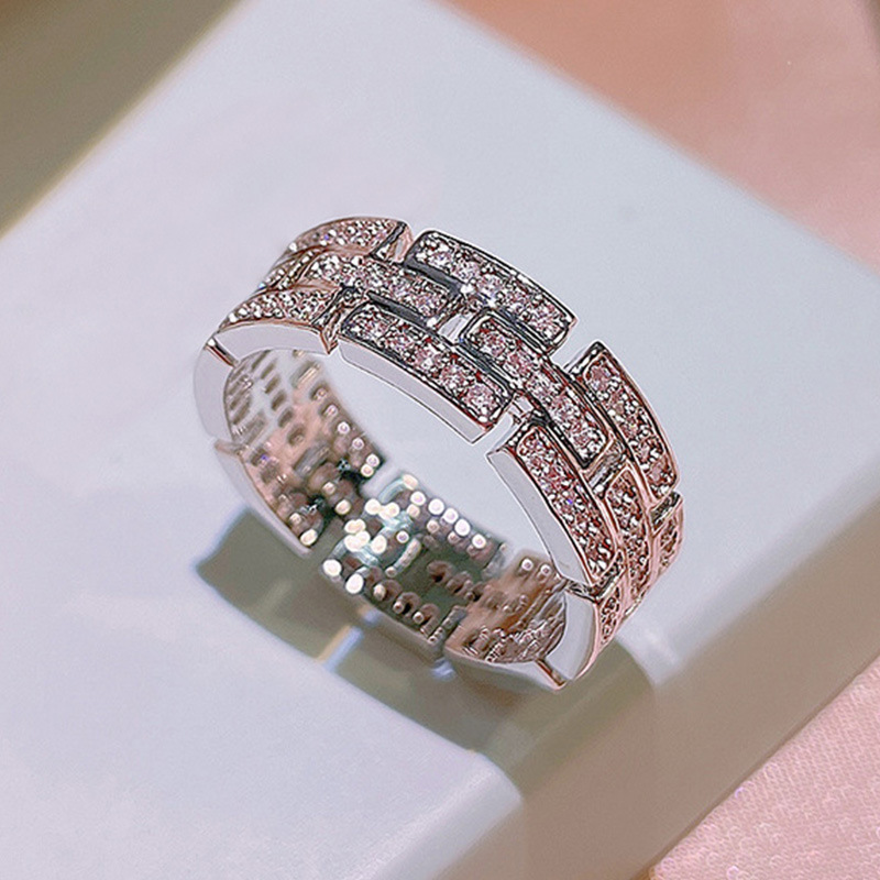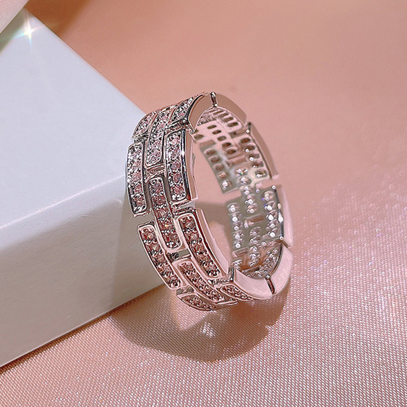 High-end light luxury zircon ring for women niche design simple and fashionable geometric pattern trendy ring
