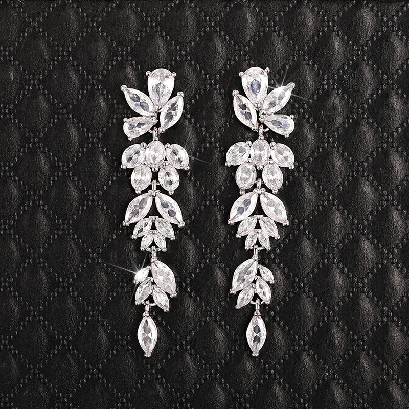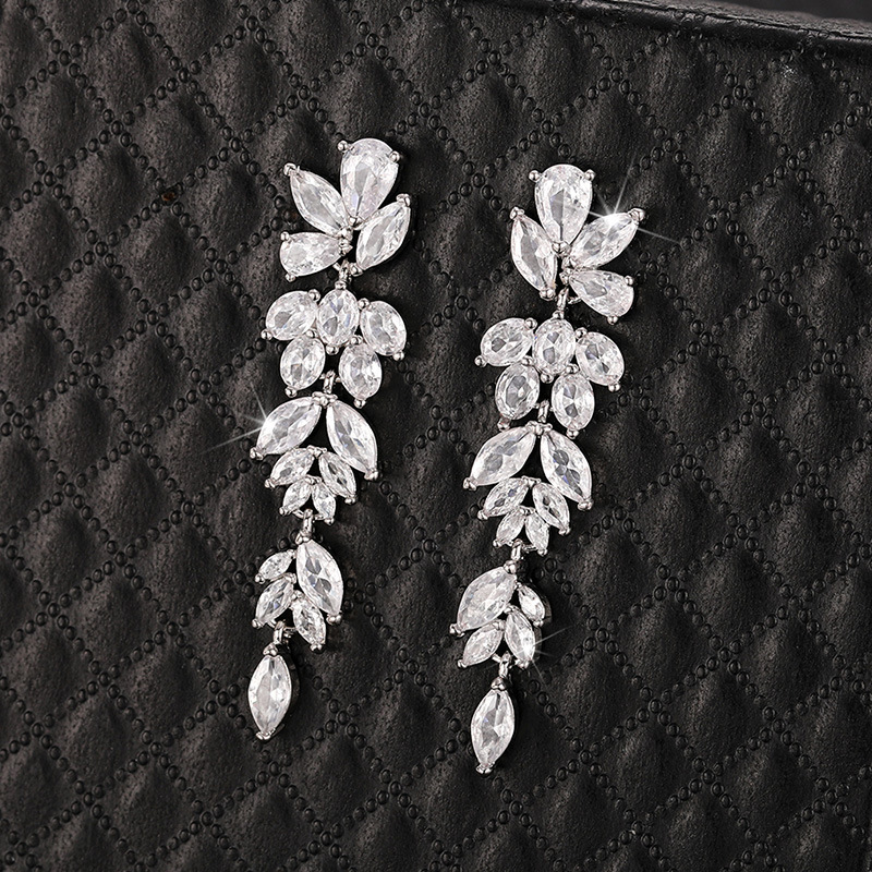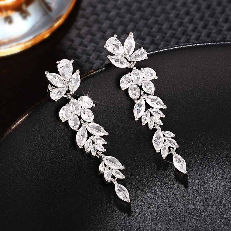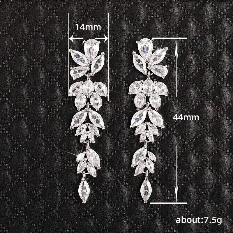 High-end long floral earrings for women, niche face-enhancing small dress earrings, temperament exaggerated bridal earrings