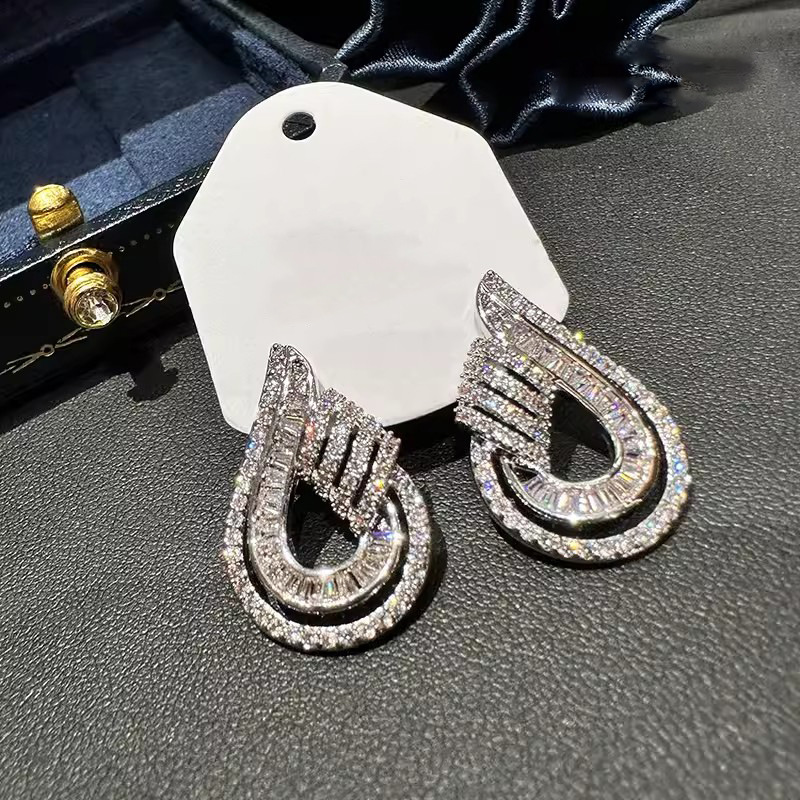 High-end popular earrings for celebrities, women's water drop hollow design earrings, light luxury urban trend