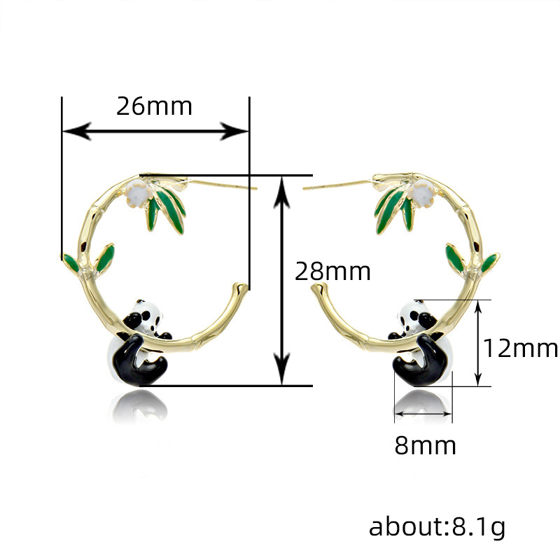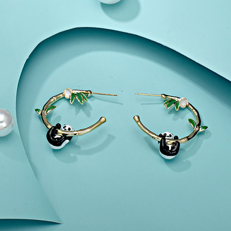 High-end short hair earrings niche light luxury panda bamboo earrings atmospheric face thin oil drop earrings for women