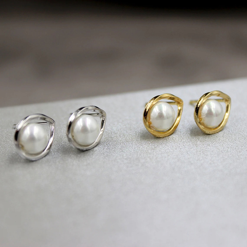 High-end simple earrings fashionable daily commuting all-match imitation pearl earrings Mobius ring earrings