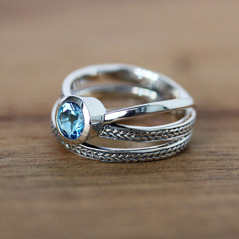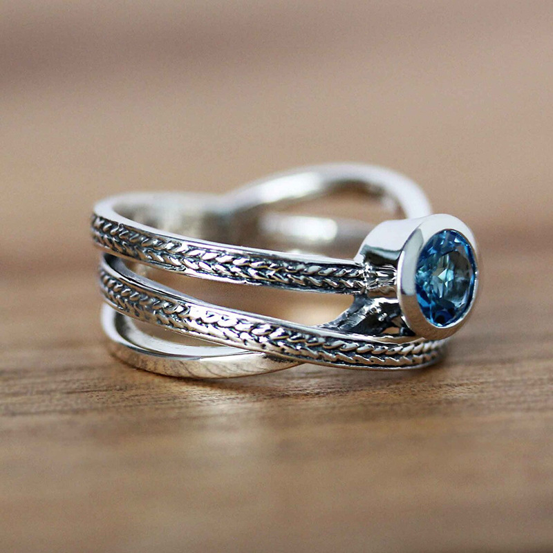 High-grade luxury three-layer superimposed ring cross design micro-inlaid women's index finger ring twist braided jewelry