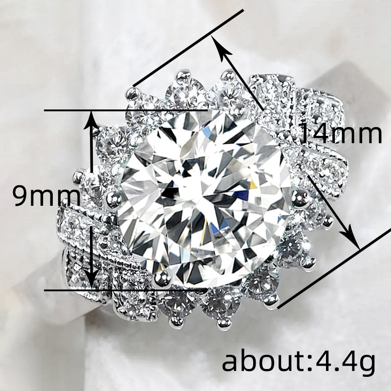 Micro-inlaid celebrity style classic all-match popular ring six-claw zircon wedding ring European and American style light luxury ring