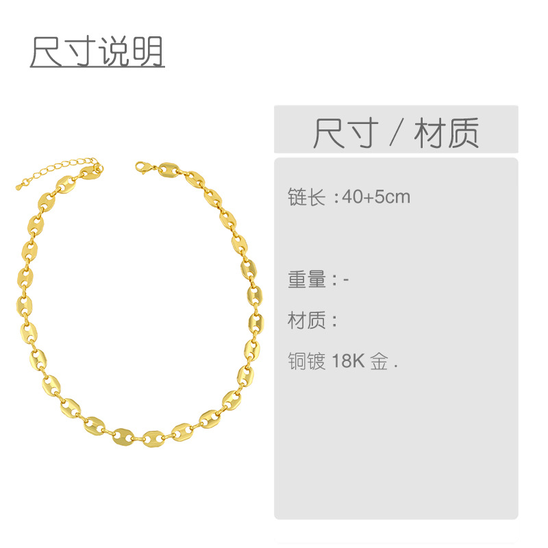 Hip-hop cool style pig nose necklace European and American Internet celebrity all-match smooth metal clavicle chain nks31