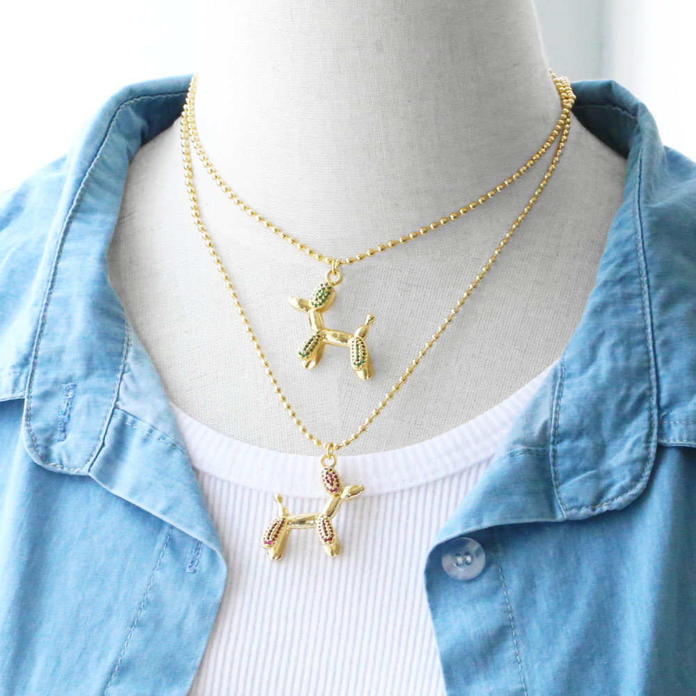 Hip-hop simple fashion inlaid zircon puppy necklace female Internet celebrity jewelry cute balloon dog clavicle chain nkw28