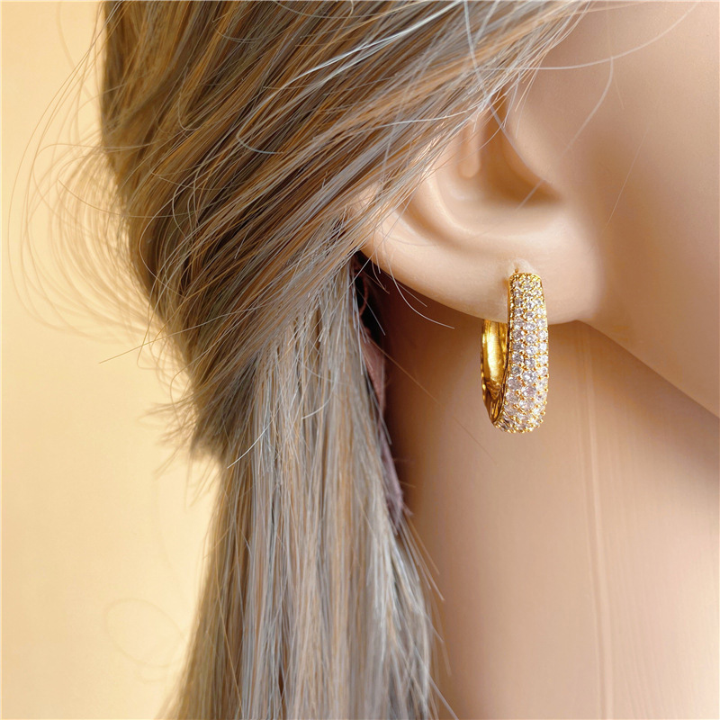 Hip-hop street diamond-studded personality niche earrings trend women's simple earrings hollow design