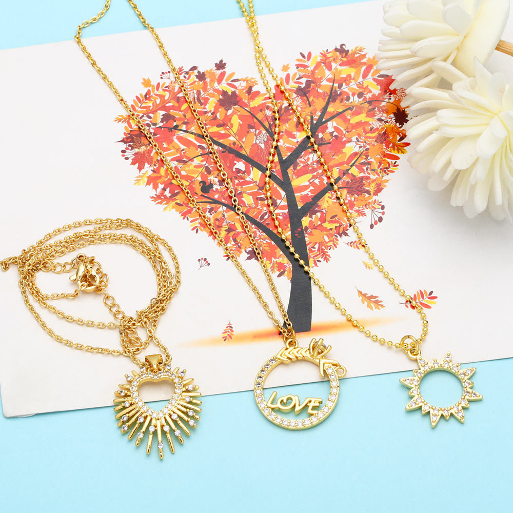 Hollow love sun necklace female personality style 18k gold diamond sun clavicle necklace nkb795