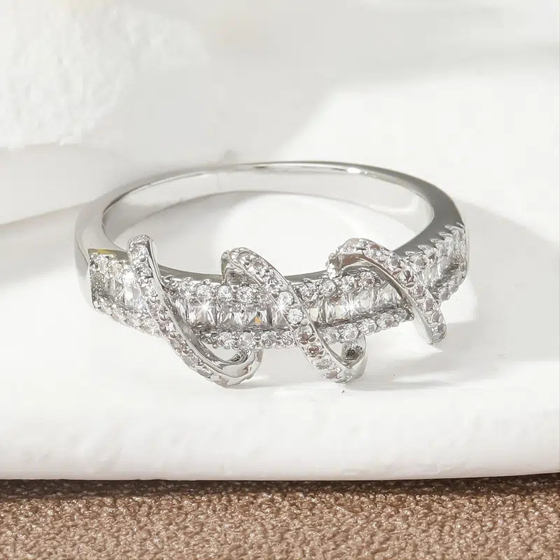 New zircon ring hollow cross four claws fashion design proposal wedding ring birthday gift ring