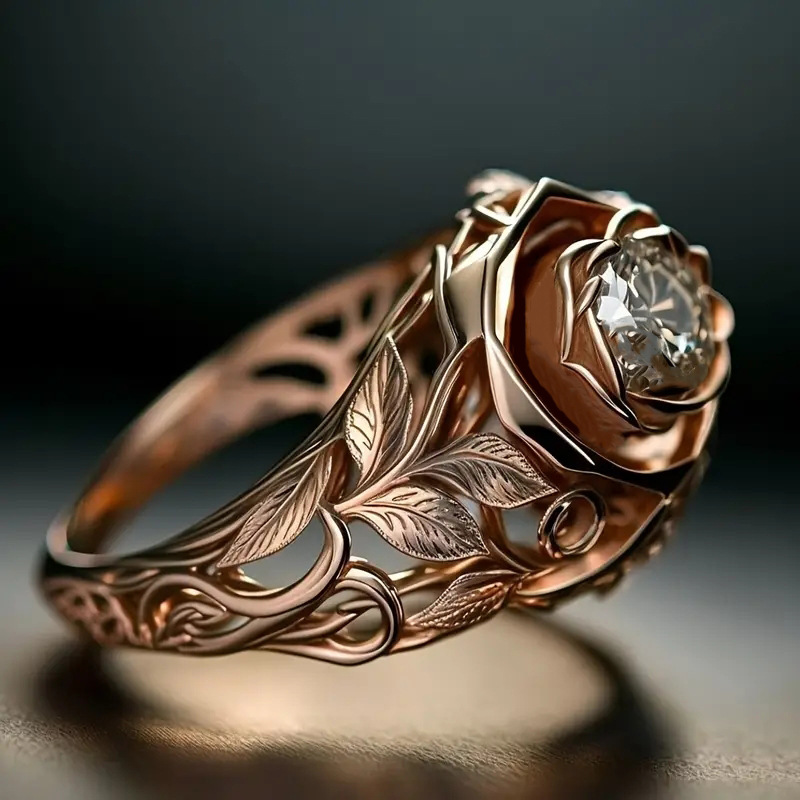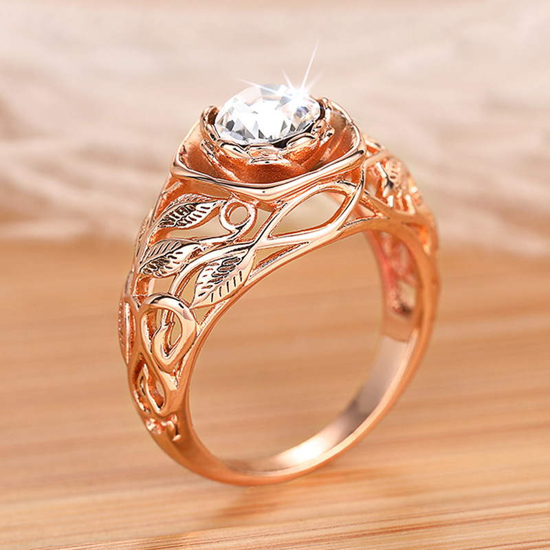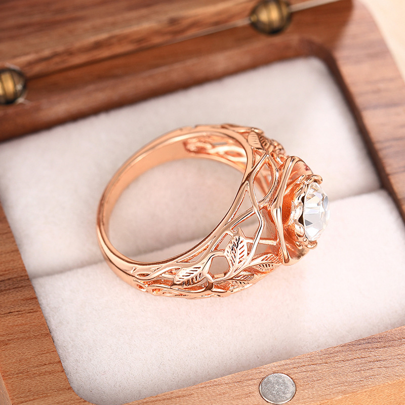 Hong Kong style forest hollow ring female rose flower exquisite ring elegant temperament daily accessories