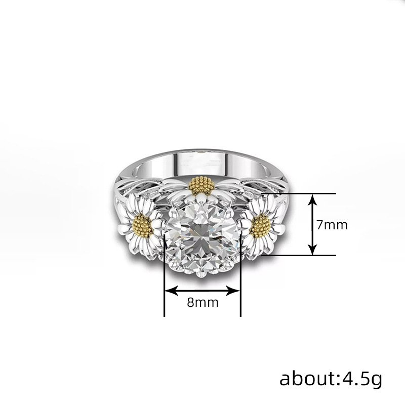 Hong Kong style forest style small daisy flower single ring female fresh pastoral light luxury ring four claw inlaid zircon model