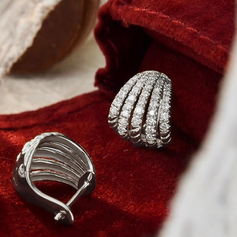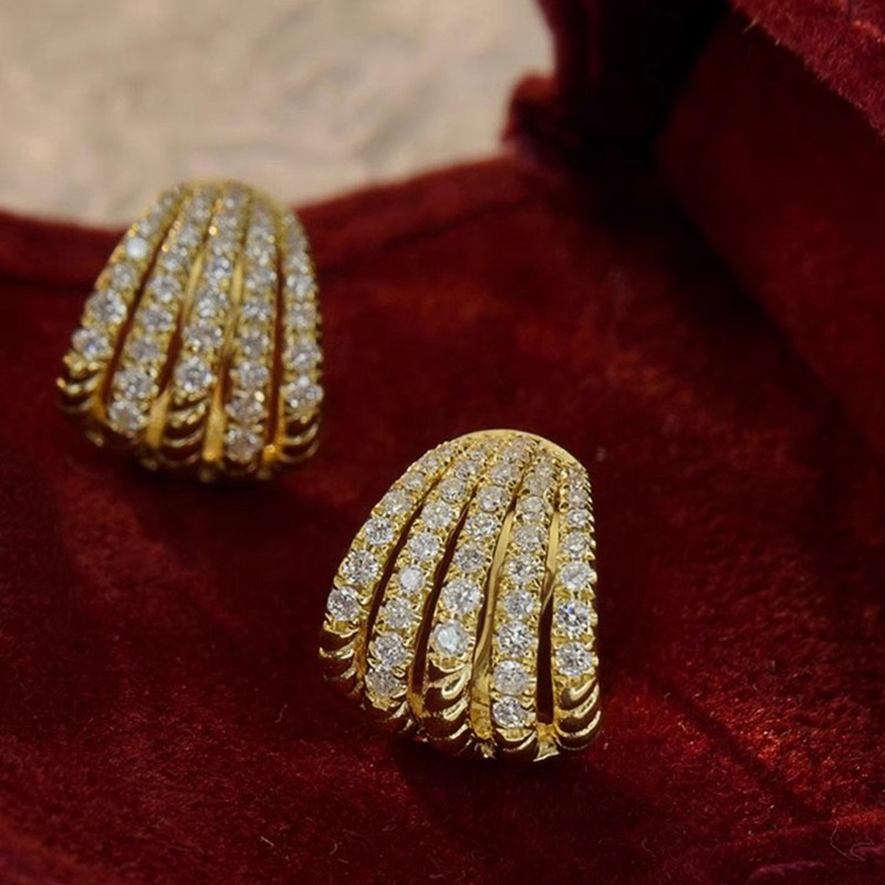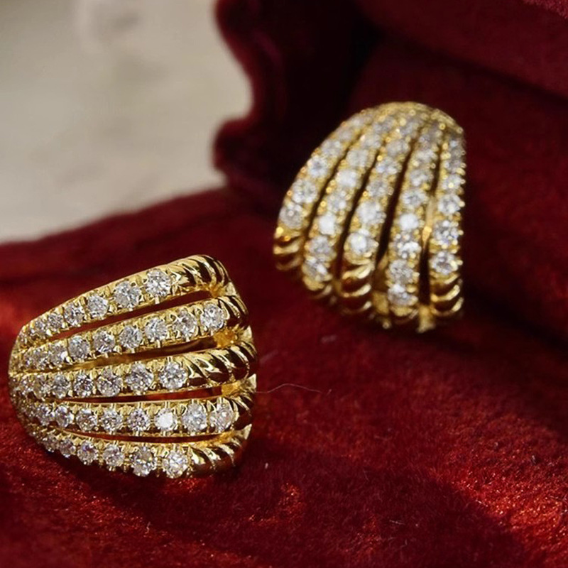 Hong Kong style high-end earrings retro fashion lines multi-layer earrings densely inlaid creative hollow design earrings