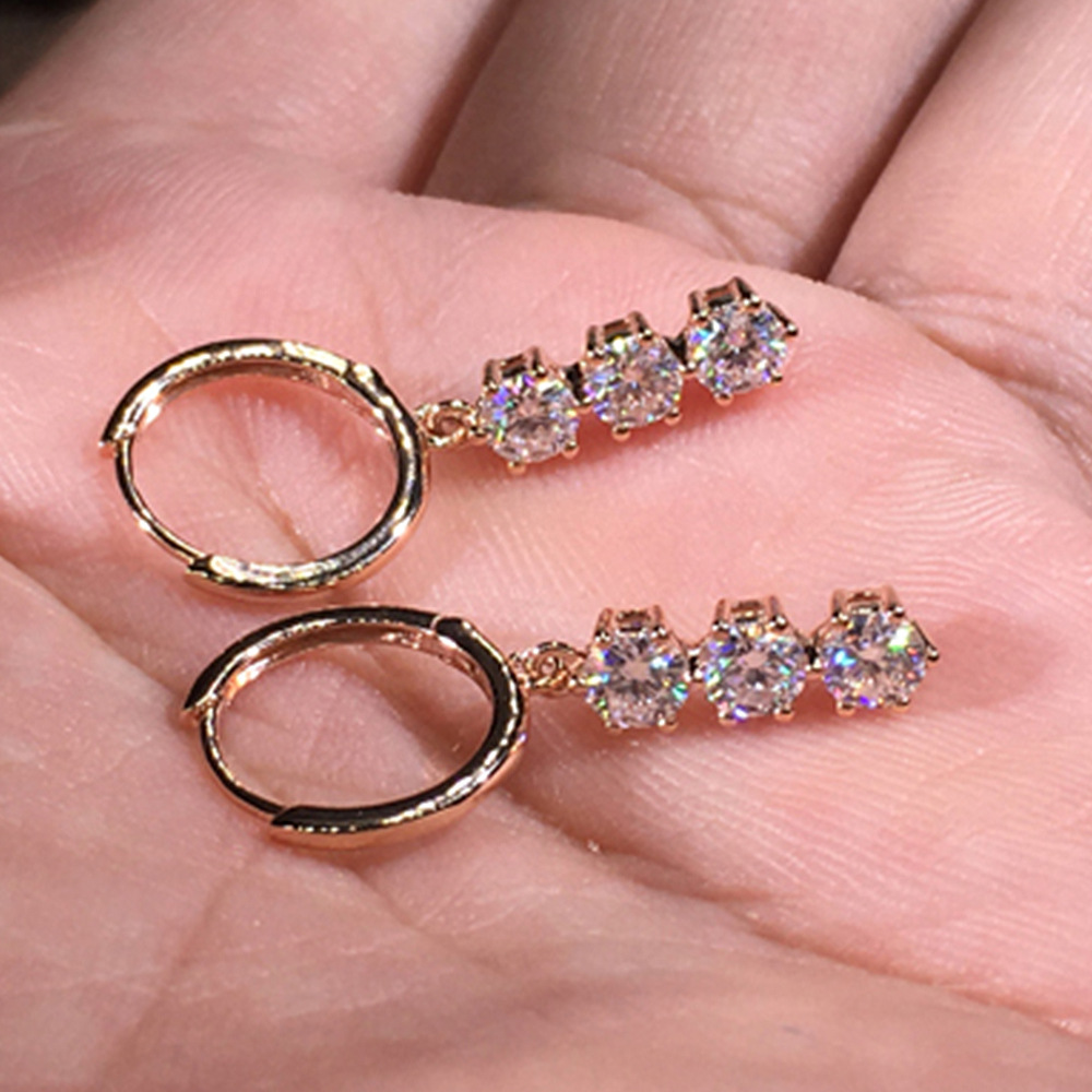 Hong Kong style retro geometric round earrings short one-line diamond tassel earrings temperament commuter earrings for women