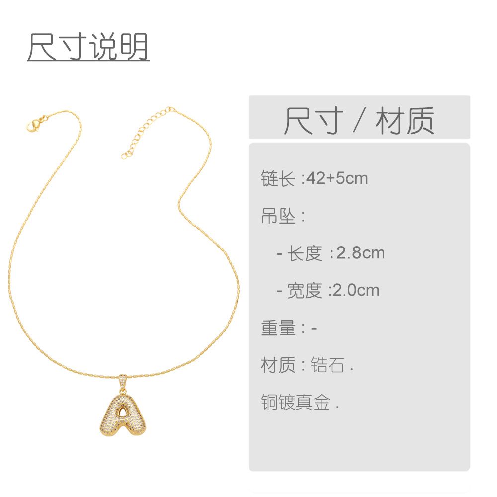 AS jewelry 26 English letters necklace female copper plated real gold inlaid zircon clavicle chain nky42