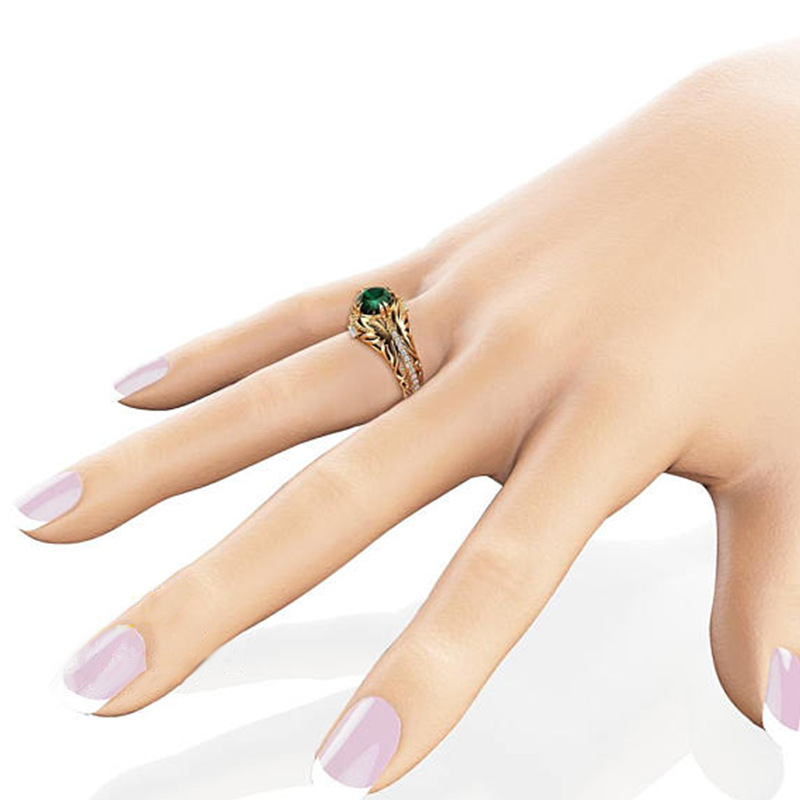 Hot jewelry European and American popular emerald green zircon diamond ring women's fashion luxury engagement ring jewelry