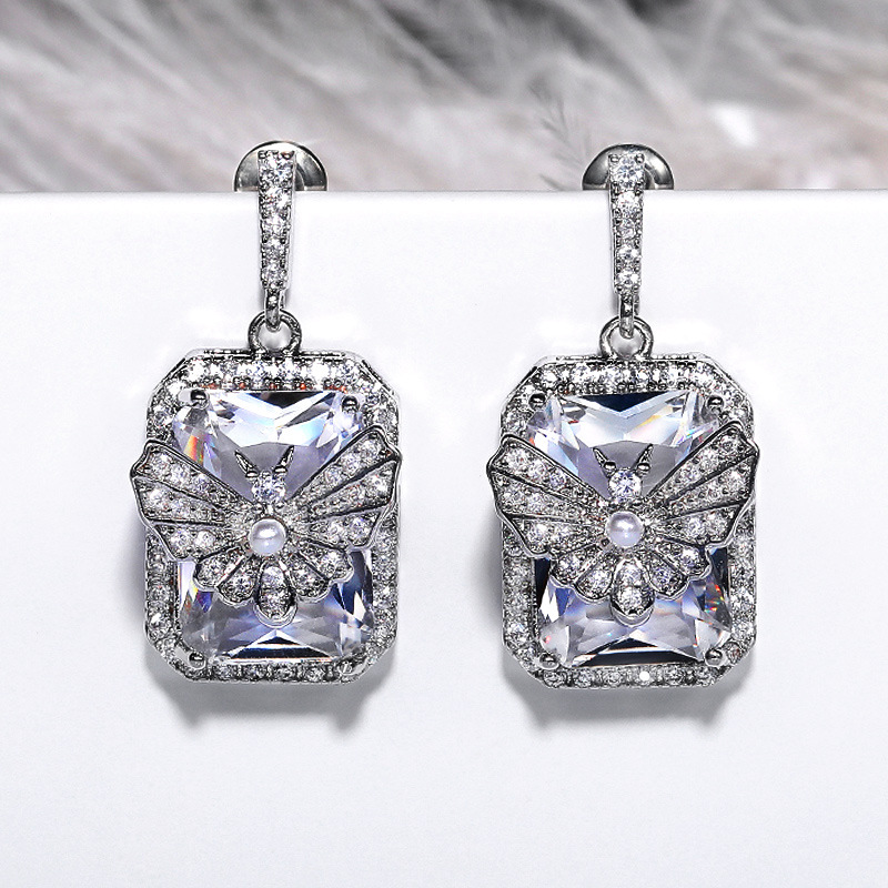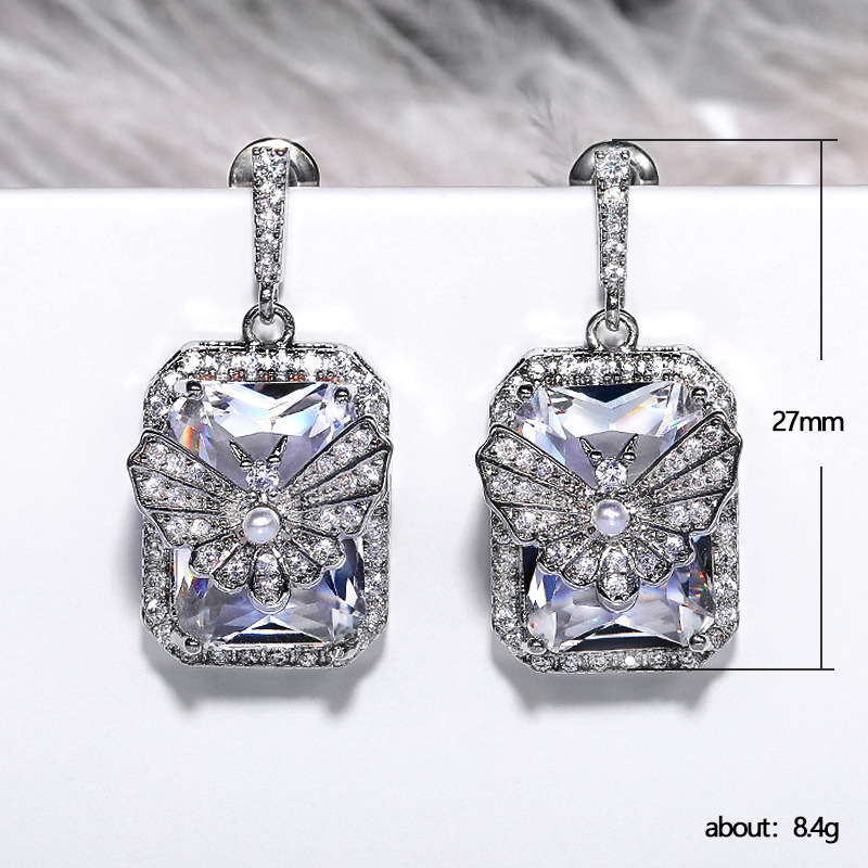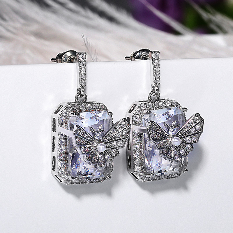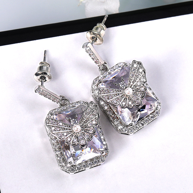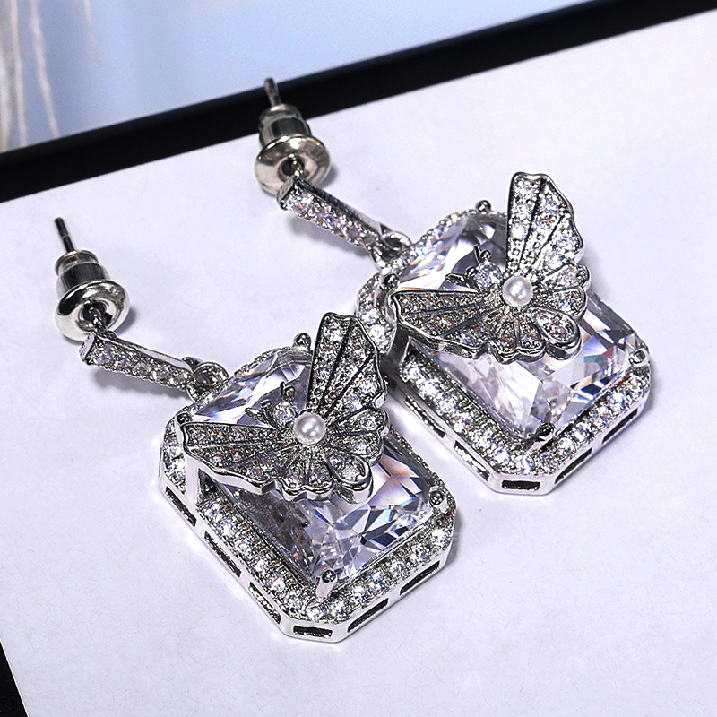 Hot jewelry European and American popular fashion butterfly earrings copper inlaid zircon platinum plated earrings wholesale