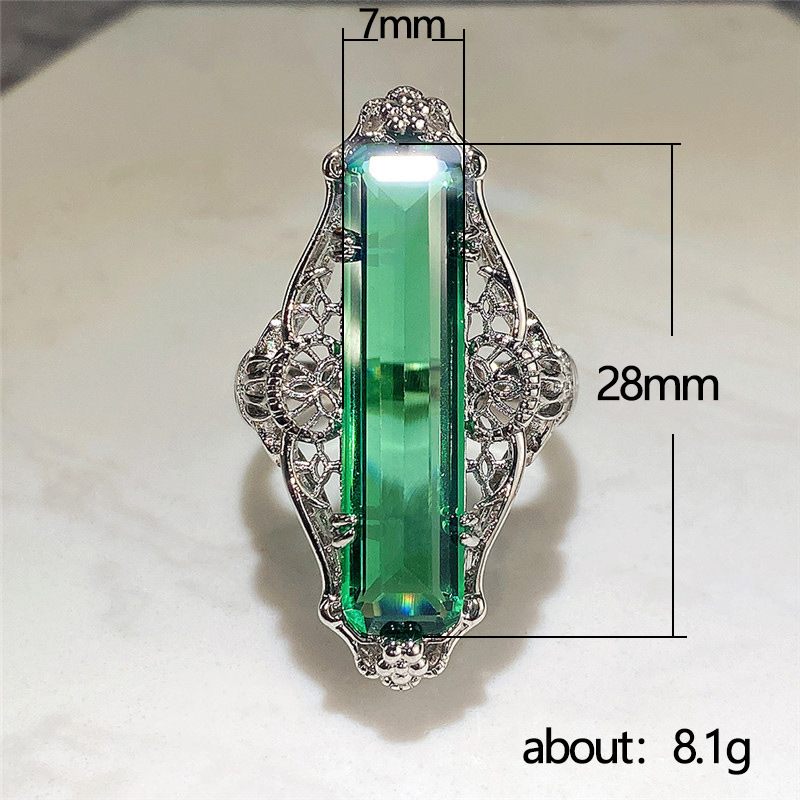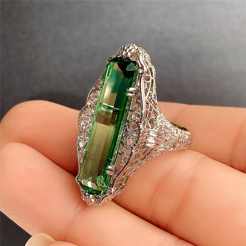 Hot jewelry retro hollow pattern green zircon ring female fashion temperament ladies ring