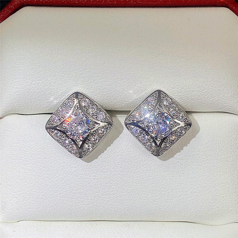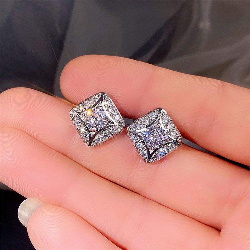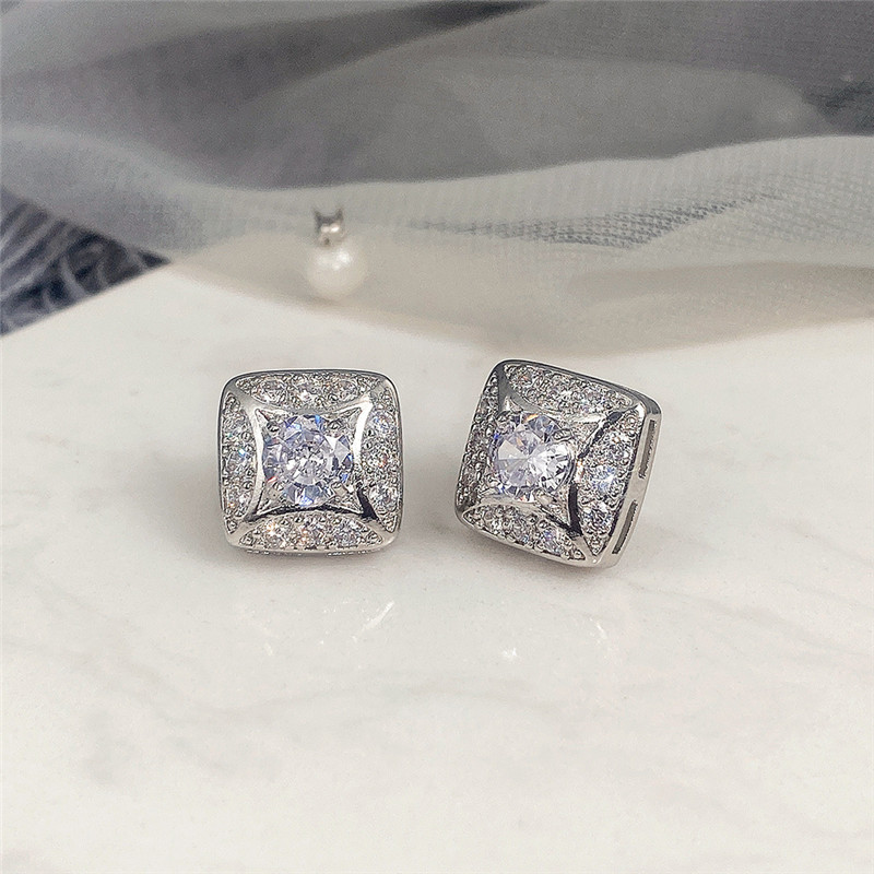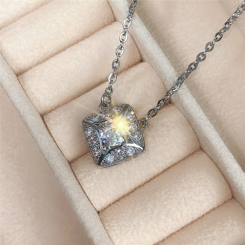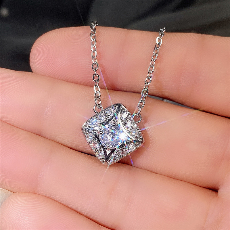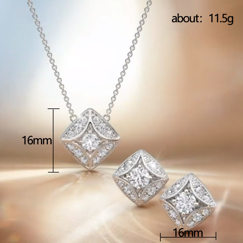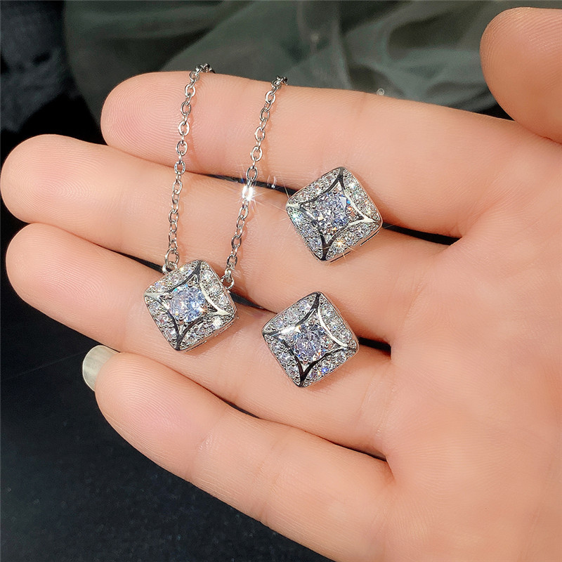 Hot jewelry set simple geometric diamond zircon earrings and necklace for women wholesale