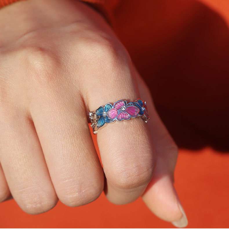 Hot new European and American women's fashion flower and butterfly painting oil ring e-commerce hot product