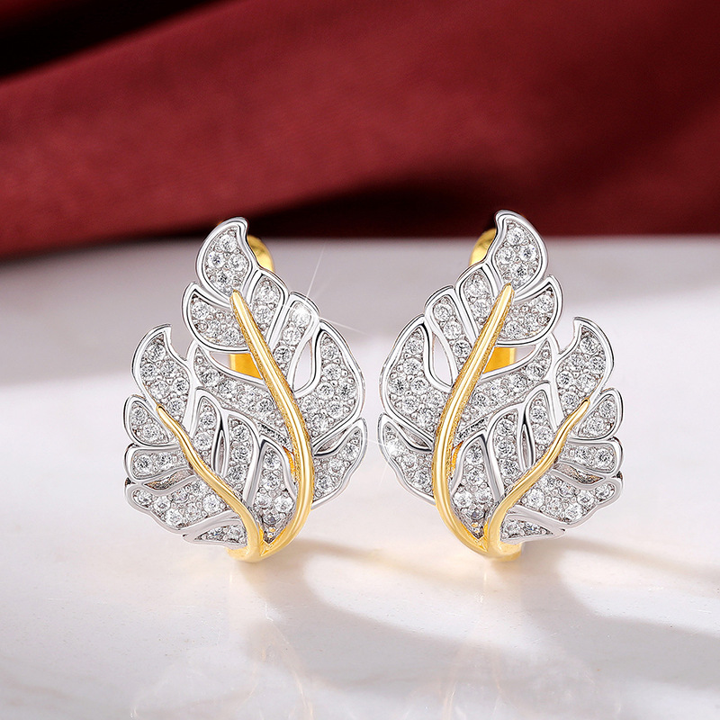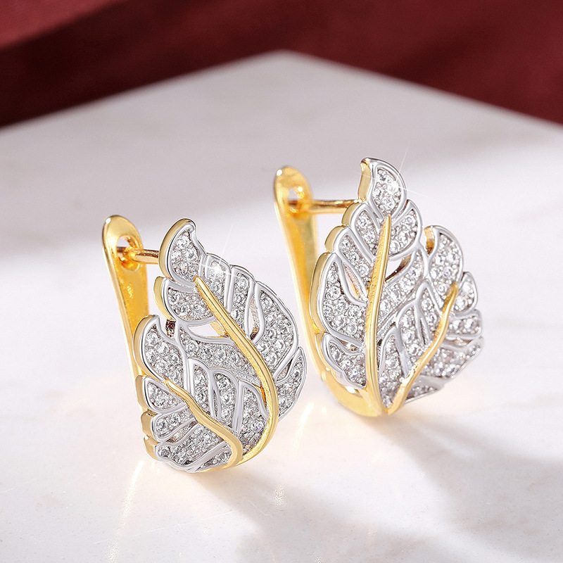 Hot new leaf earrings fashionable pastoral style light luxury temperament square face earrings popular earrings for women
