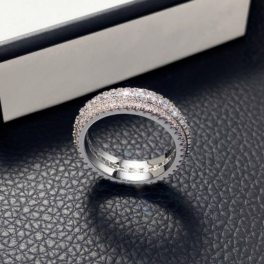 Hot ring exaggerated luxury unisex ring copper plated white gold inlaid zircon jewelry