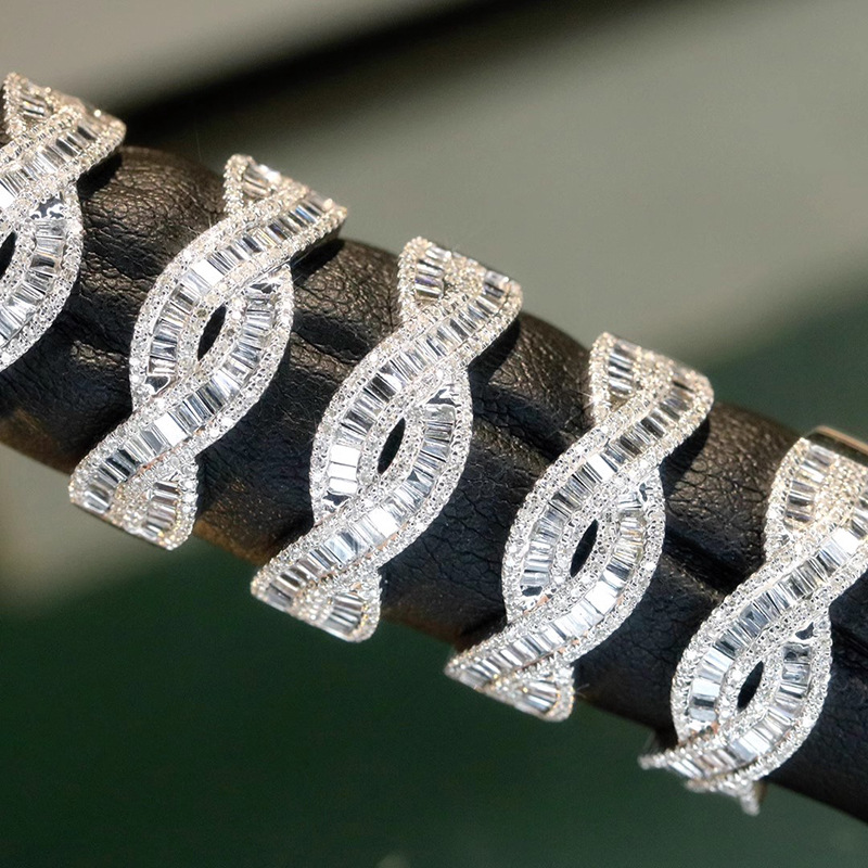 Classic four-claw imitation zircon micro-inlaid ring women's double row two-color twist arm ring engagement wedding ring women