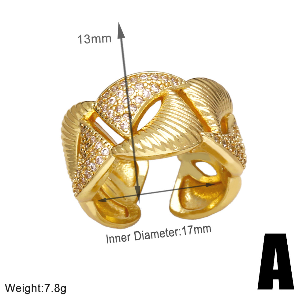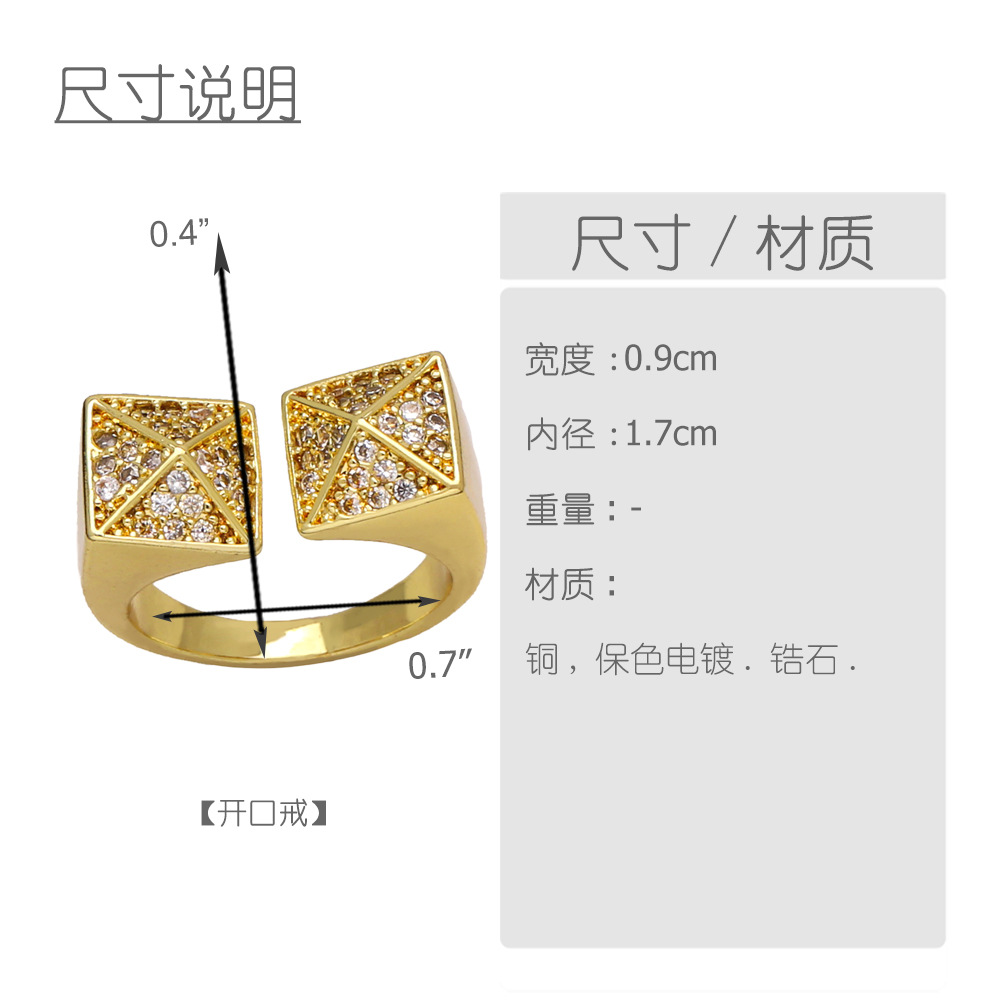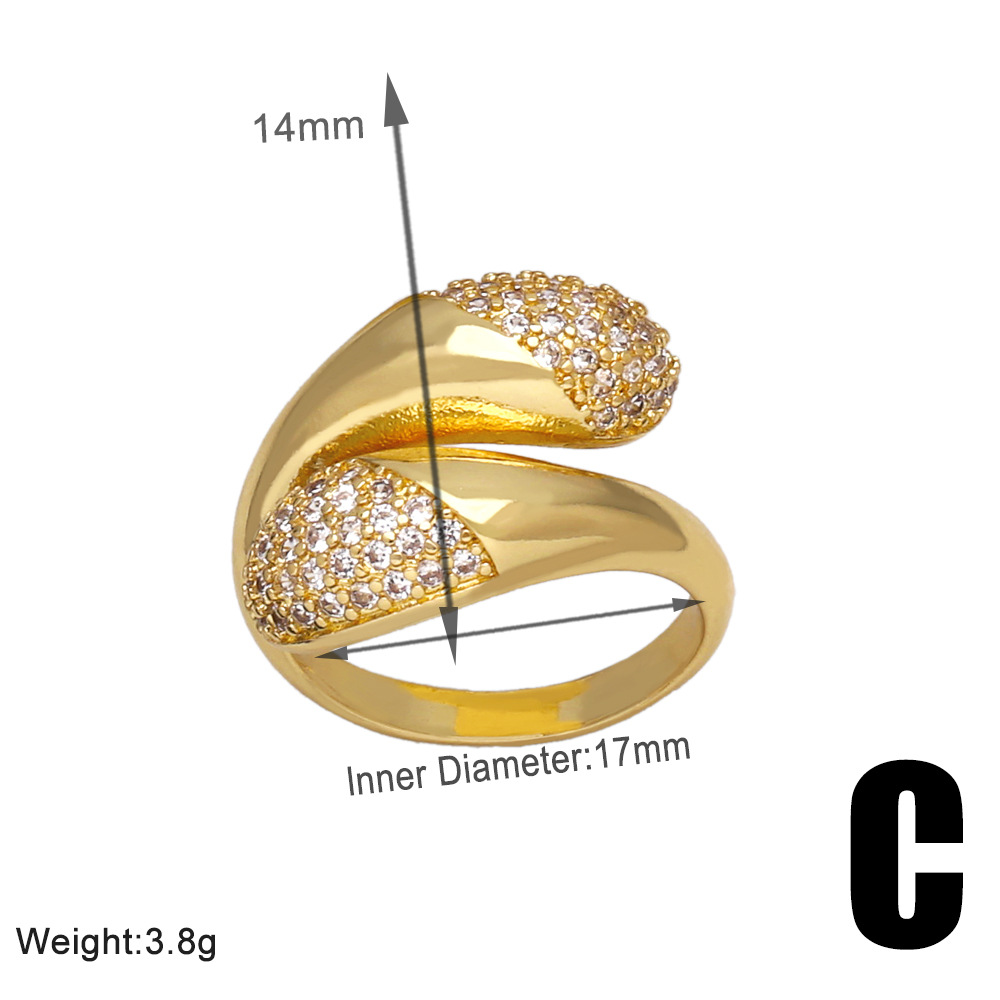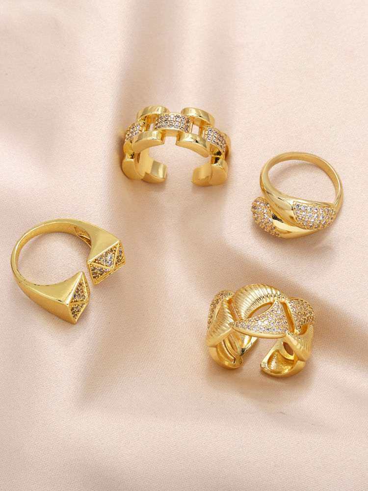 Hot sale geometric open ring female copper plated real gold inlaid zircon irregular ring rip16