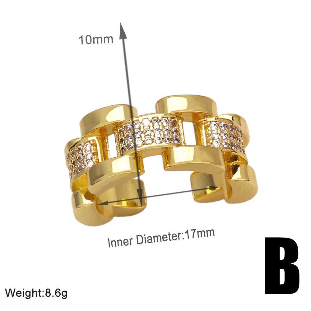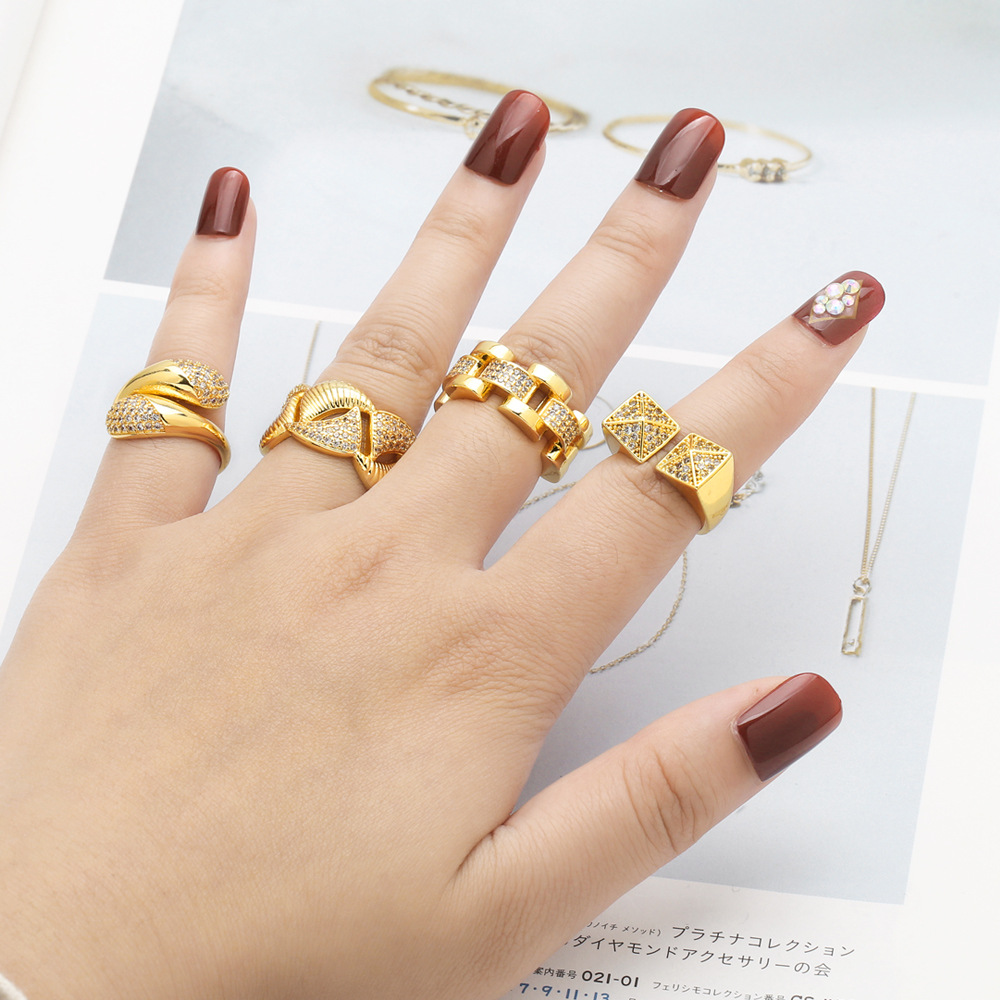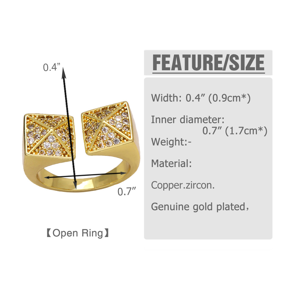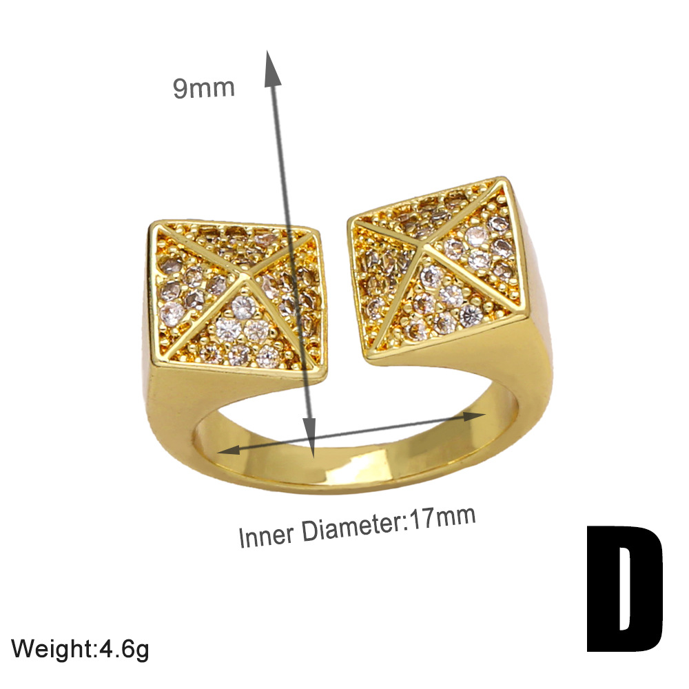 Hot sale geometric open ring female copper plated real gold inlaid zircon irregular ring rip16