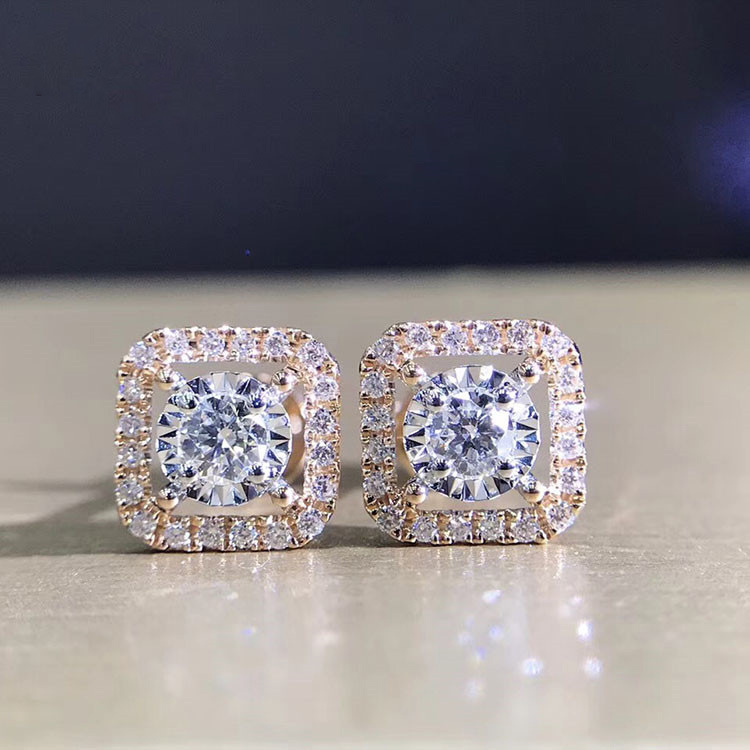 Hot sale in Dongdaemun, Korea. Simple and small square zircon earrings, elegant and versatile, beautiful and elegant jewelry for celebrities.