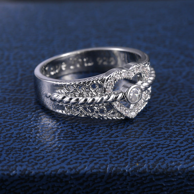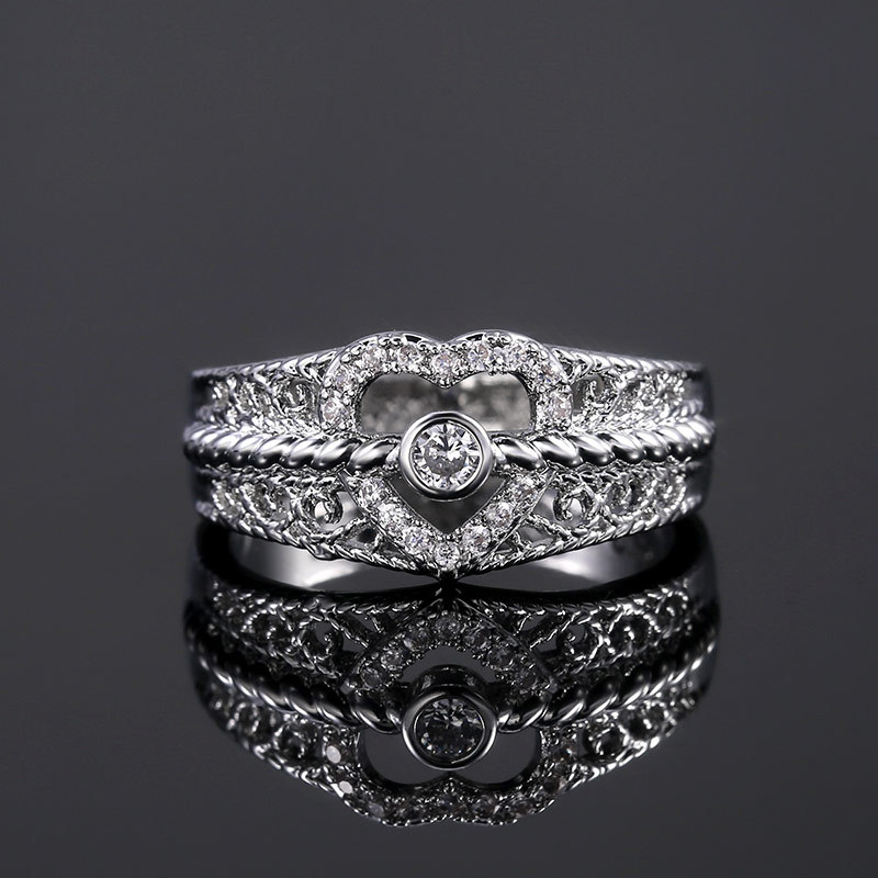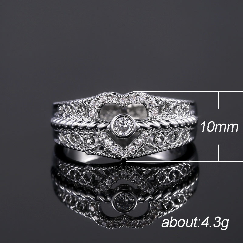 Hot sale in Europe and America, new fashion hollow carved full diamond heart couple ring love gift