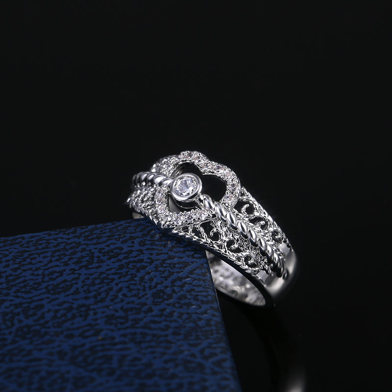 New zircon ring hollow cross four claws fashion design proposal wedding ring birthday gift ring