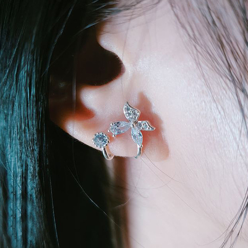 Hot sale Korean Dongdaemun style flower-shaped zircon ear clips for women, simple and versatile earrings