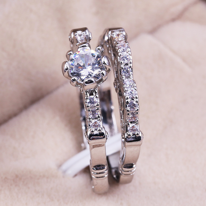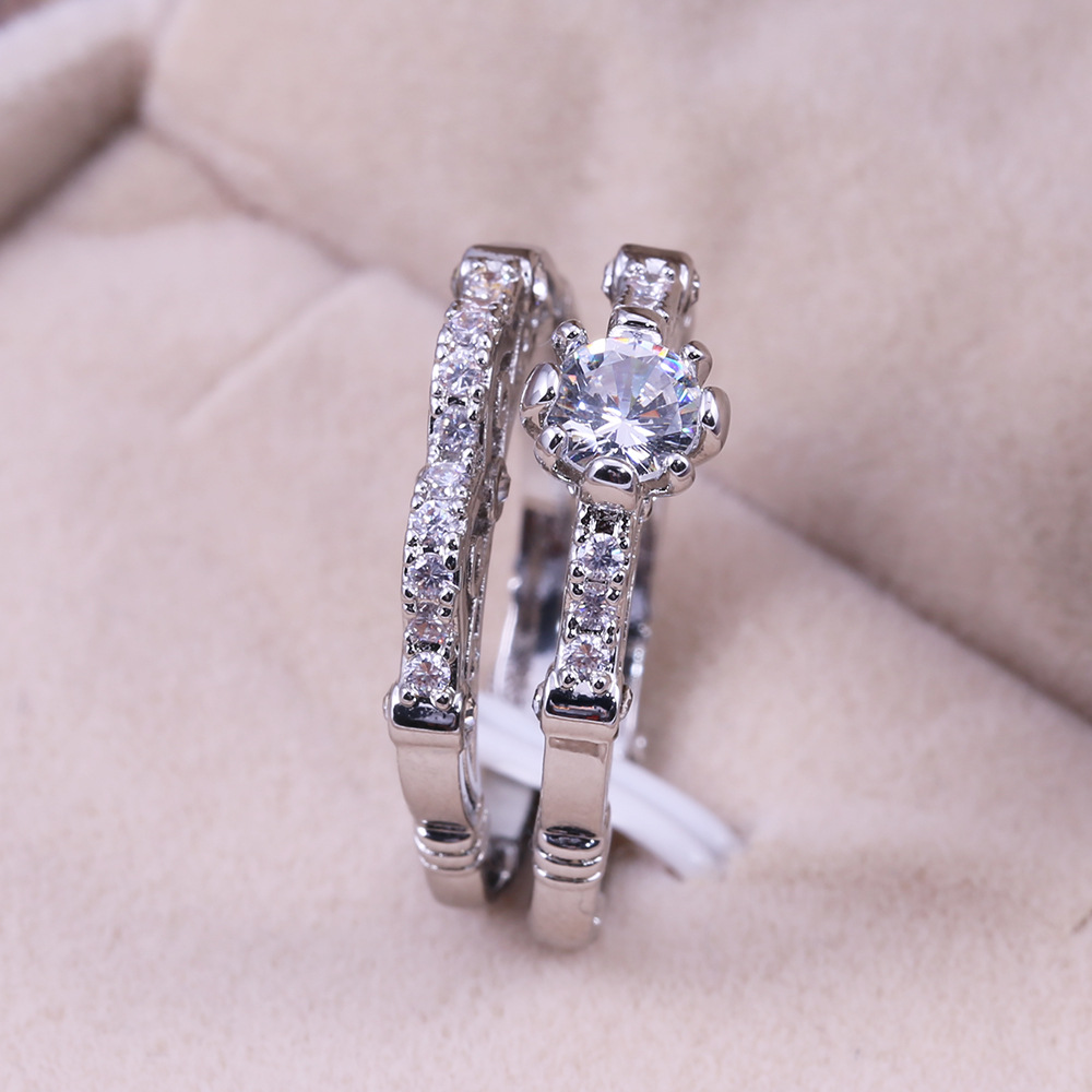 Micro-inlaid celebrity style classic all-match popular ring six-claw zircon wedding ring European and American style light luxury ring