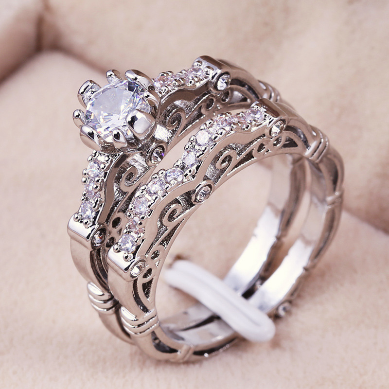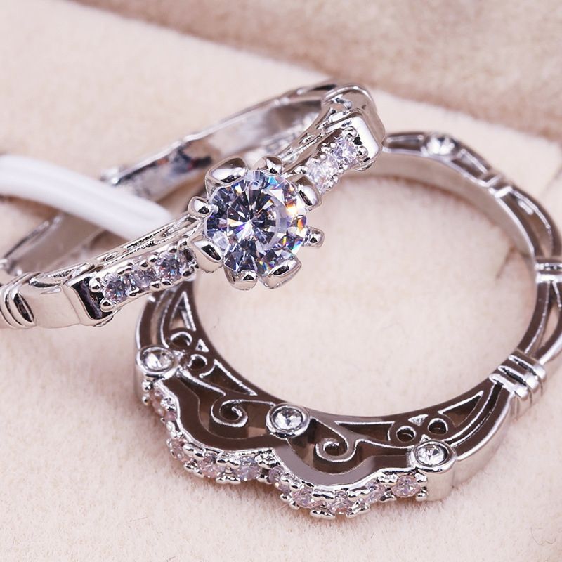 Hot sale on e-commerce platforms for classic retro-themed women's couple rings with micro-inlaid zircon