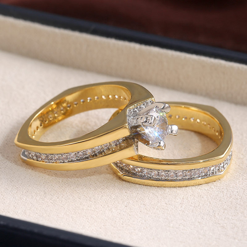 Classic four-claw imitation zircon micro-inlaid ring women's double row two-color twist arm ring engagement wedding ring women