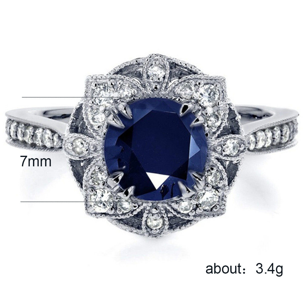 Hot-selling accessories online: fashionable hollow flower women's ring inlaid with blue zircon finger ring hand jewelry