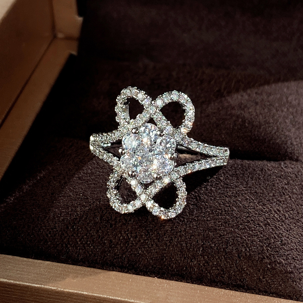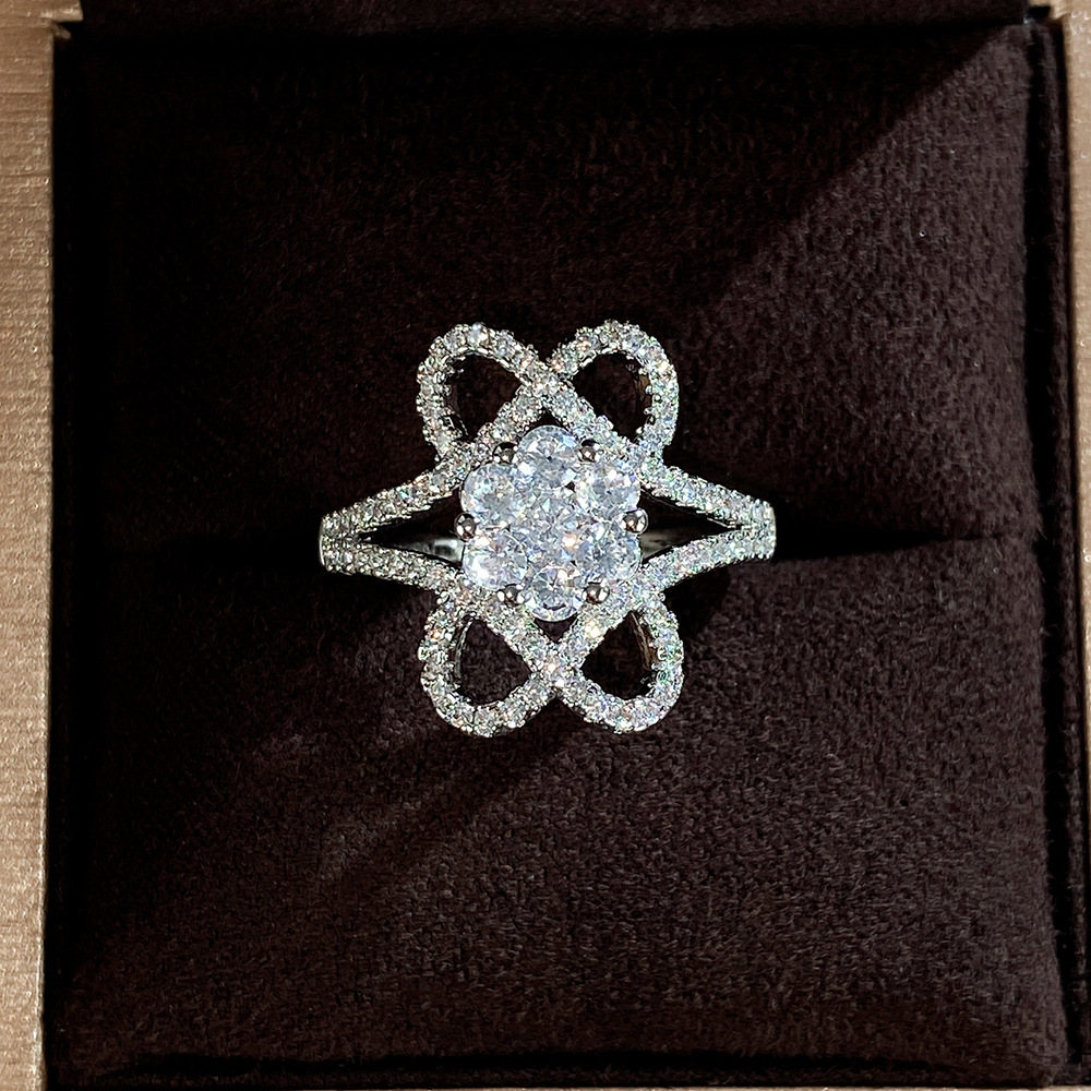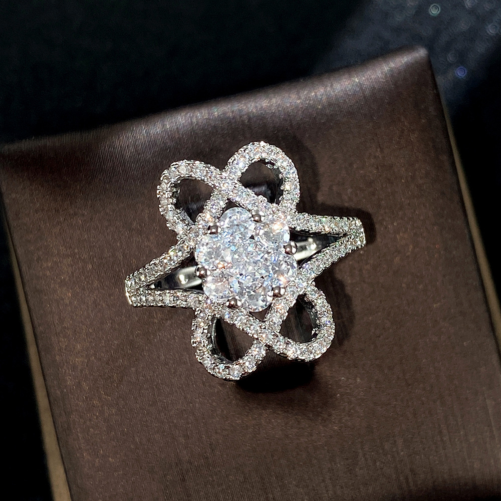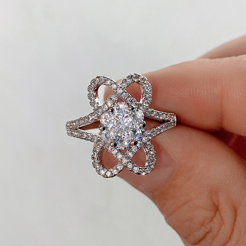Hot selling accessories white gold plated full diamond flower shaped zircon ring female beautiful engagement ring