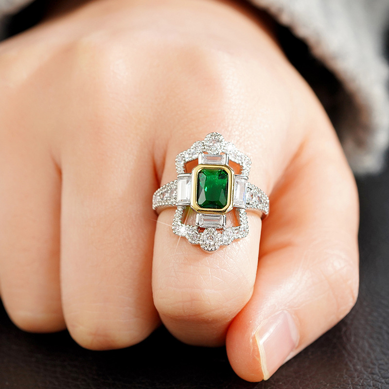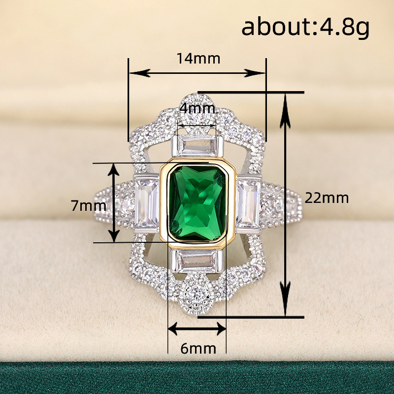 Hot selling aristocratic ring European and American design square princess ring domineering and generous luxury ring