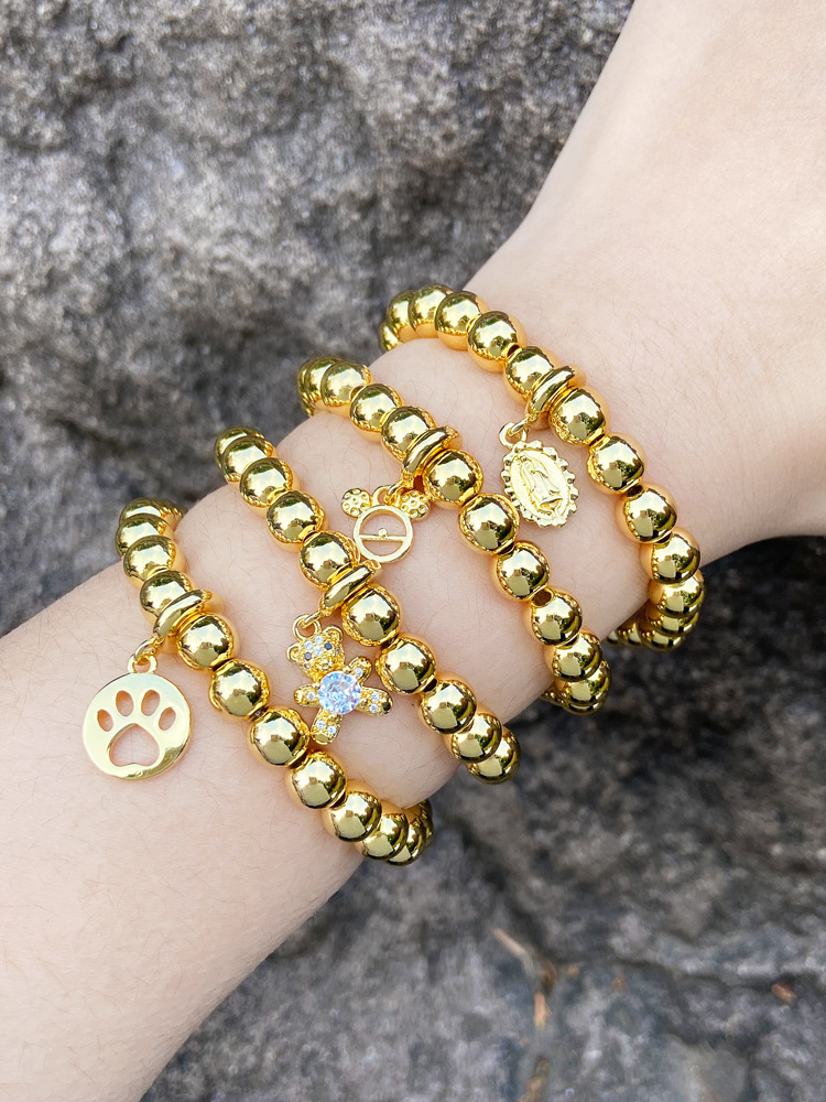 Hot selling bear pendant bracelet gold-plated versatile inlaid zircon Our Lady of the beads bracelet brc72