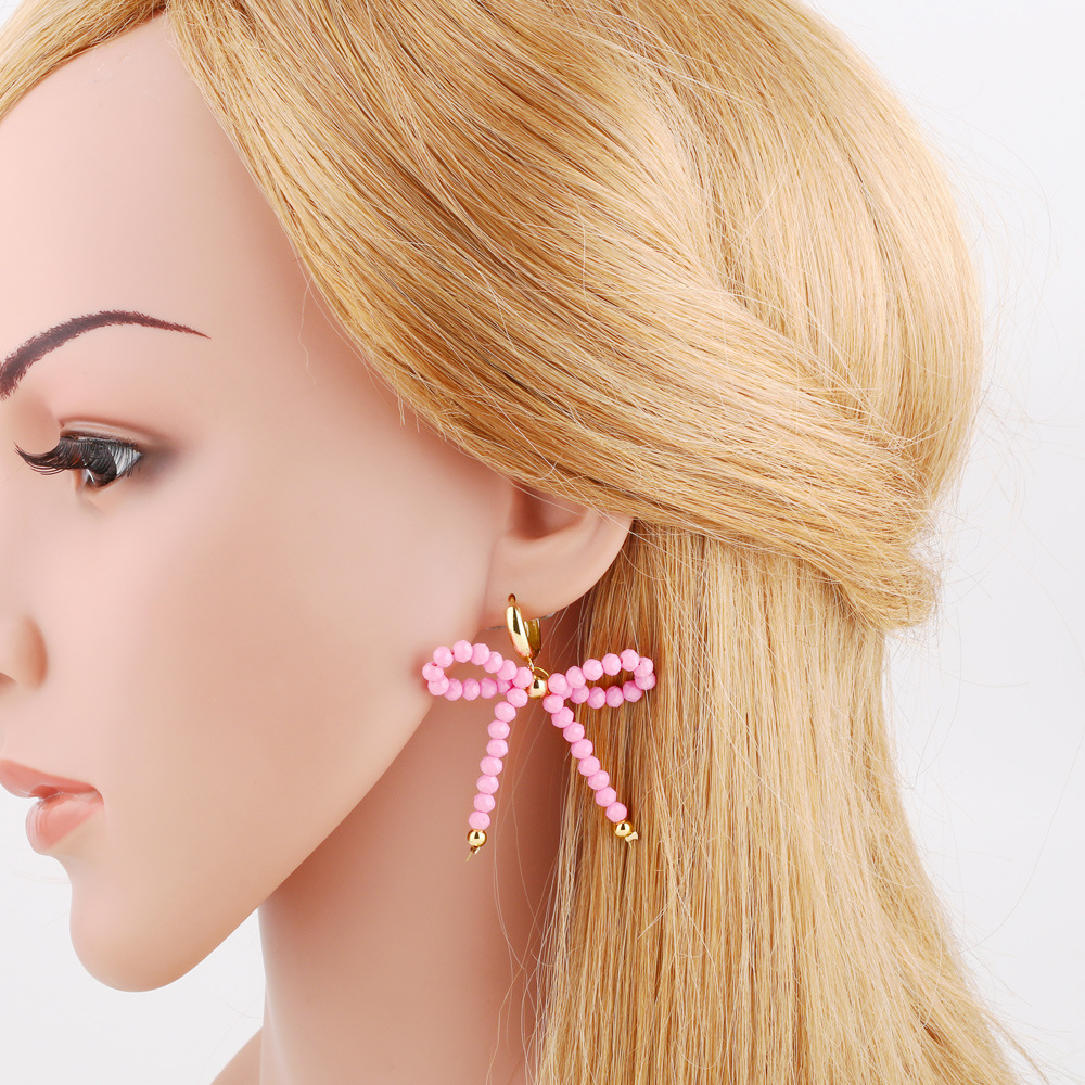 Hot selling bow rice bead earrings for women European and American fashion gold-plated color earrings era016